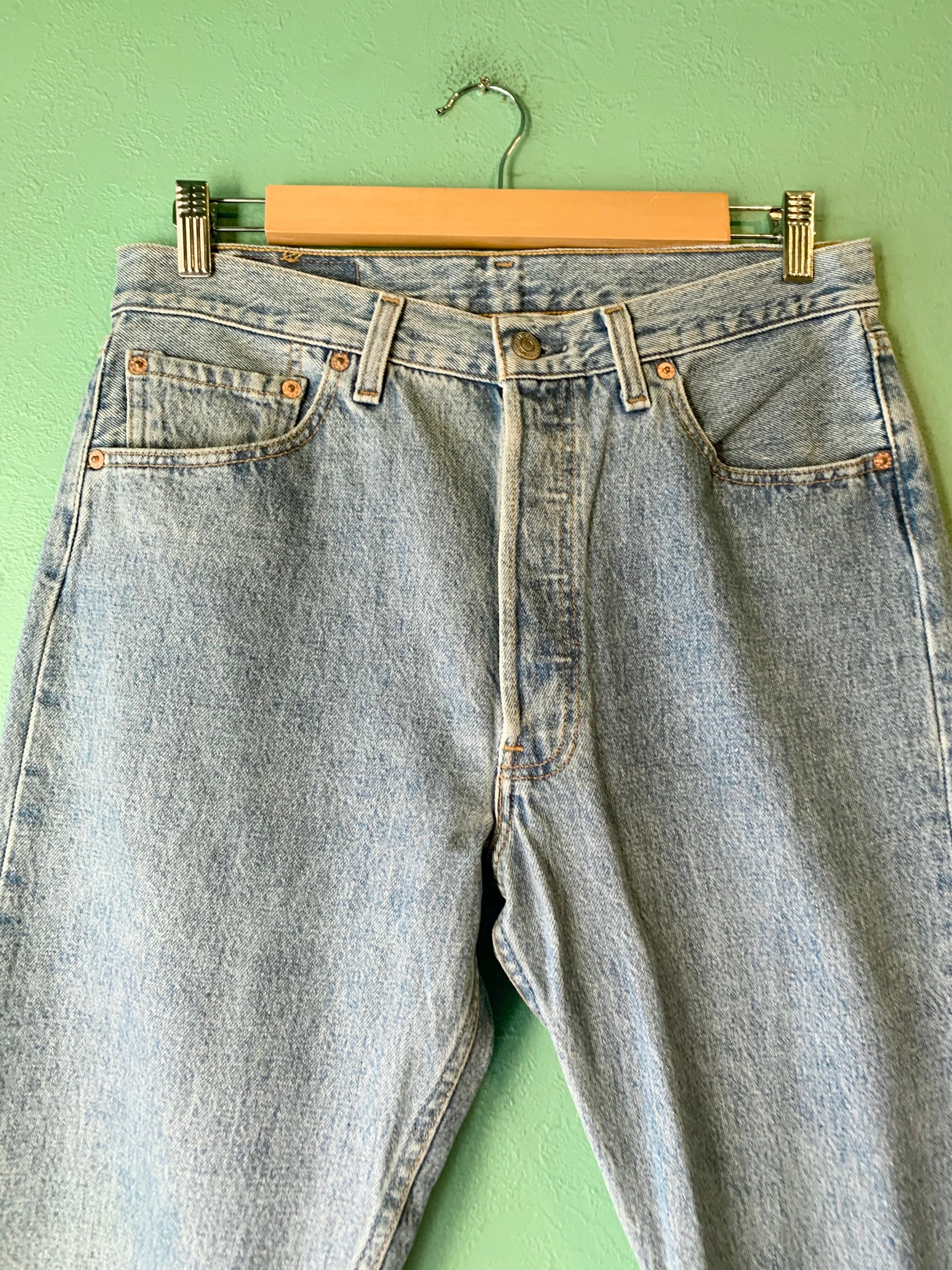雰囲気のあるアイスウォッシュ程度まで色落ちした古着ならではの一本。