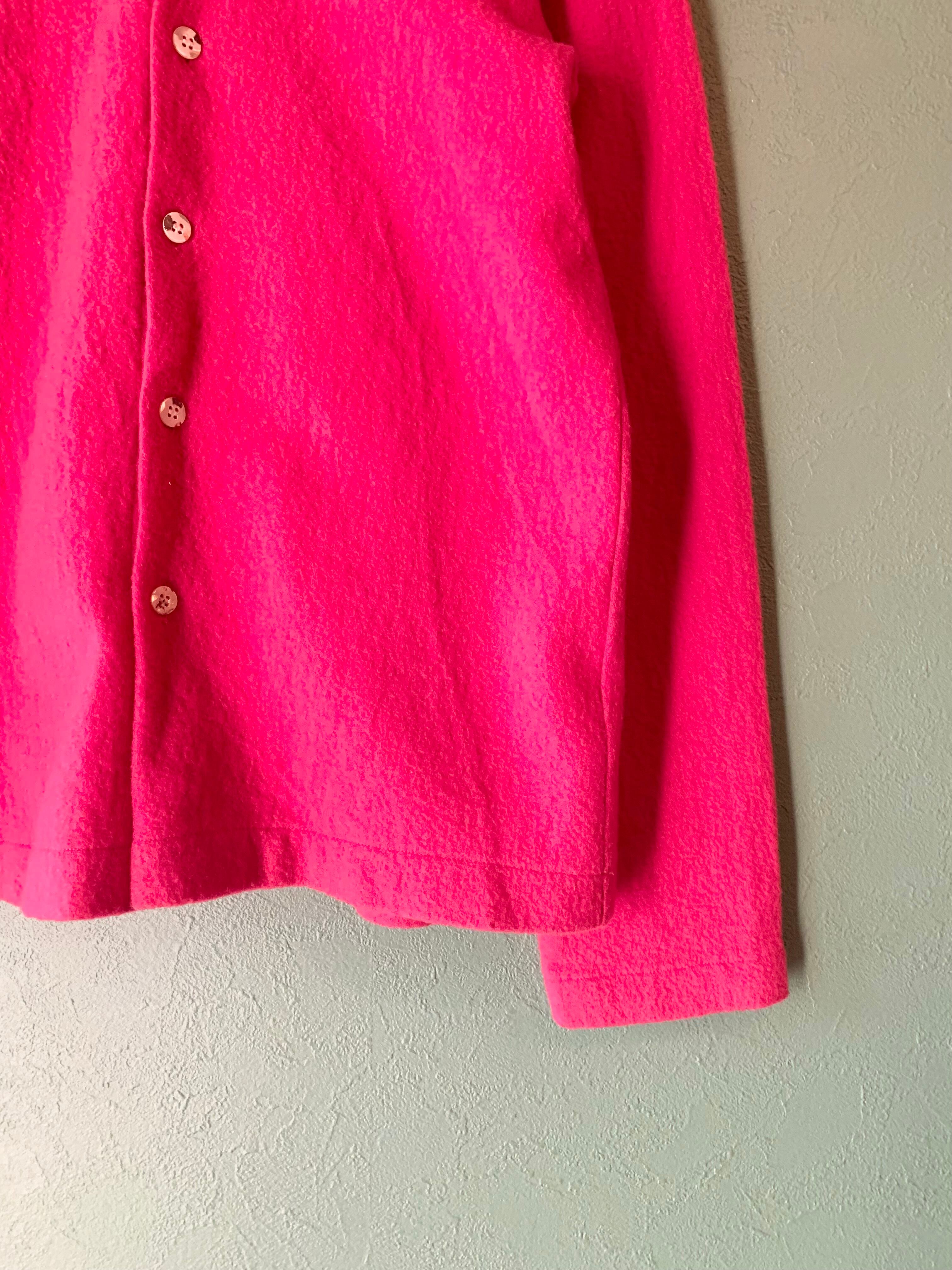 こちらはビビッドなピンクカラーが目を引く可愛らしいデザイントップス。