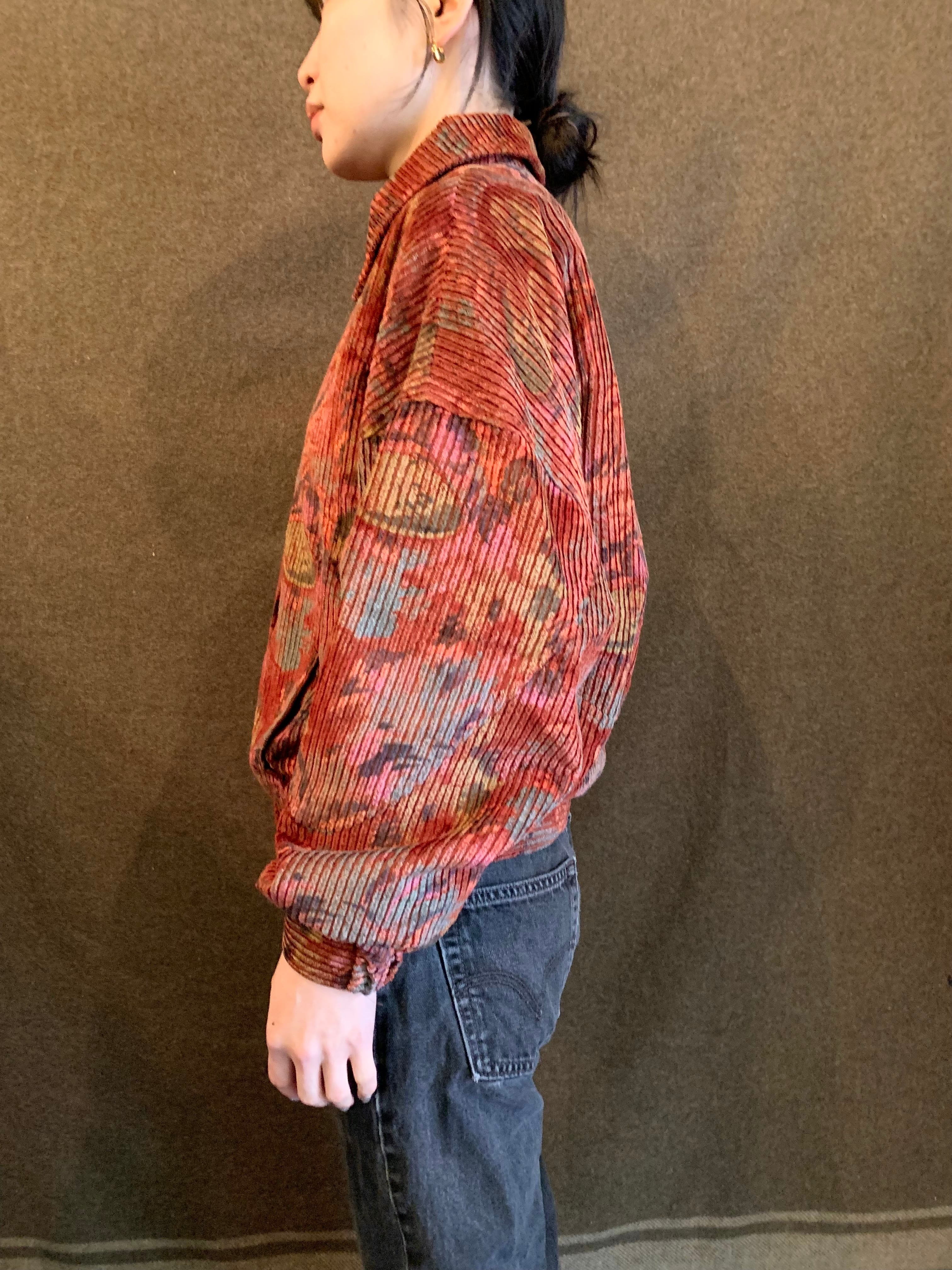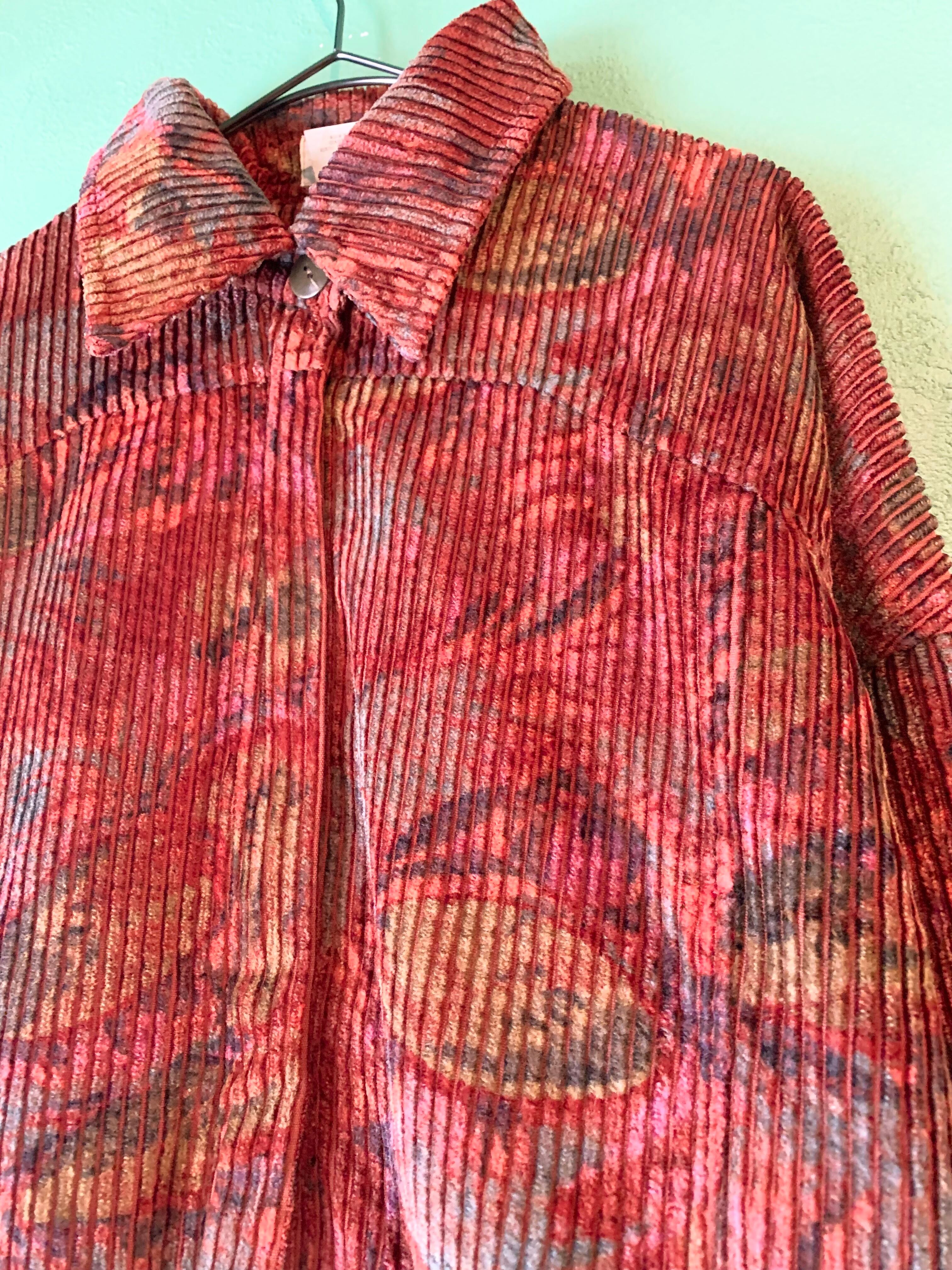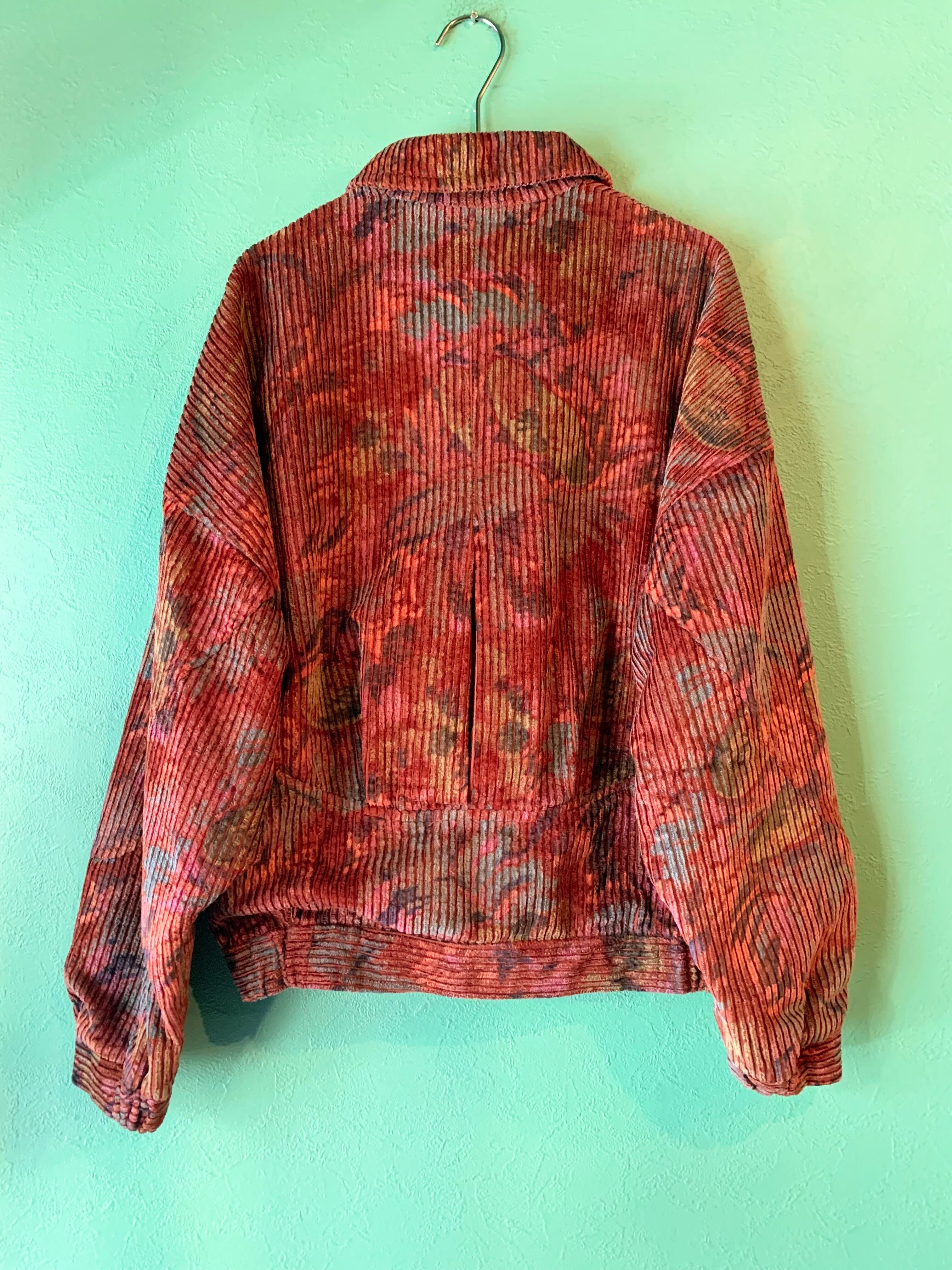 こちらは太畝コーデュロイのような凹凸のある生地に花?植物?の柄になったジャケット。