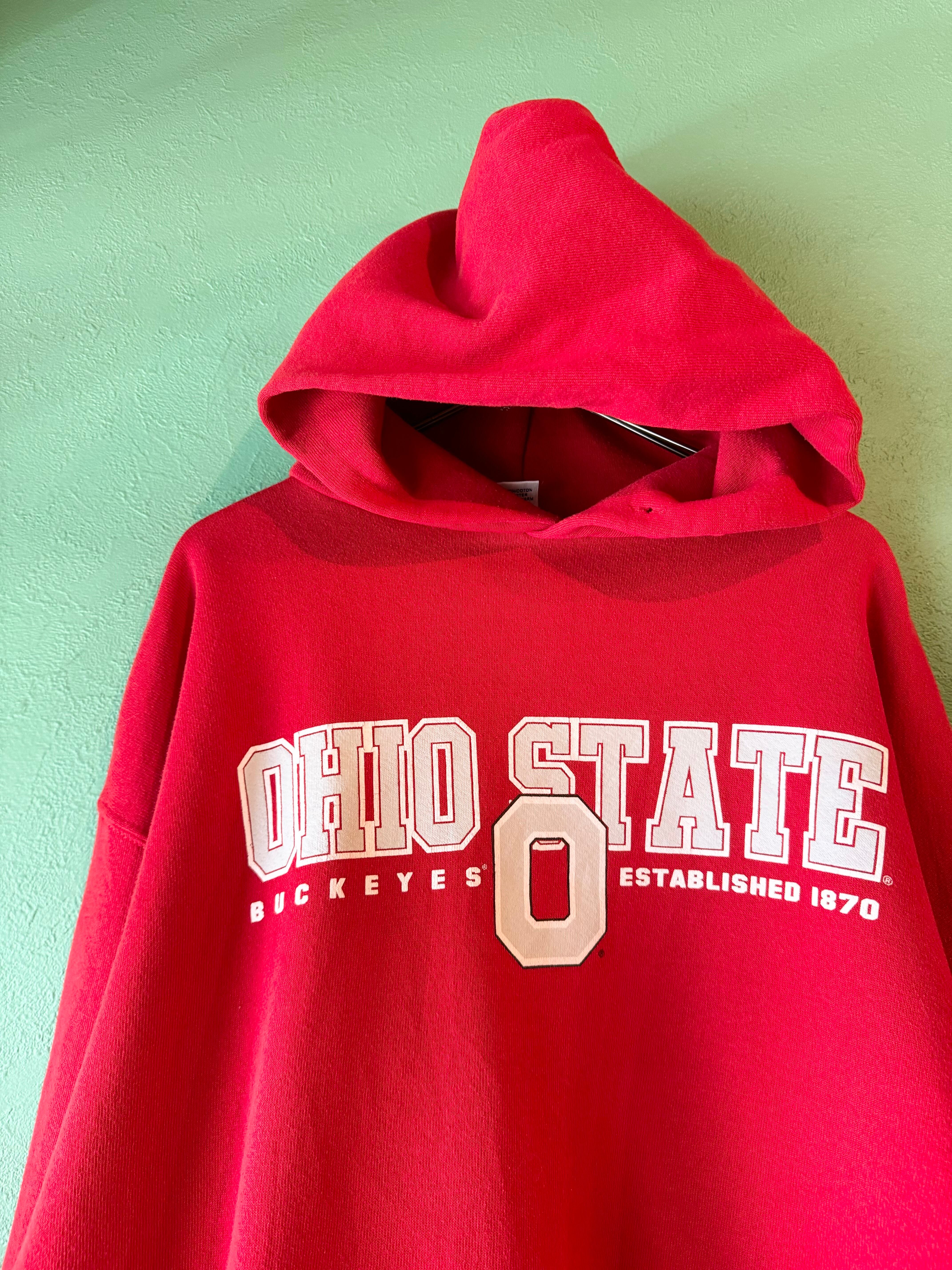 アメリカオハイオ州の大学のカレッジアイテムで、イメージカラーでもあるビビッドなレッドカラーの可愛い1着です。