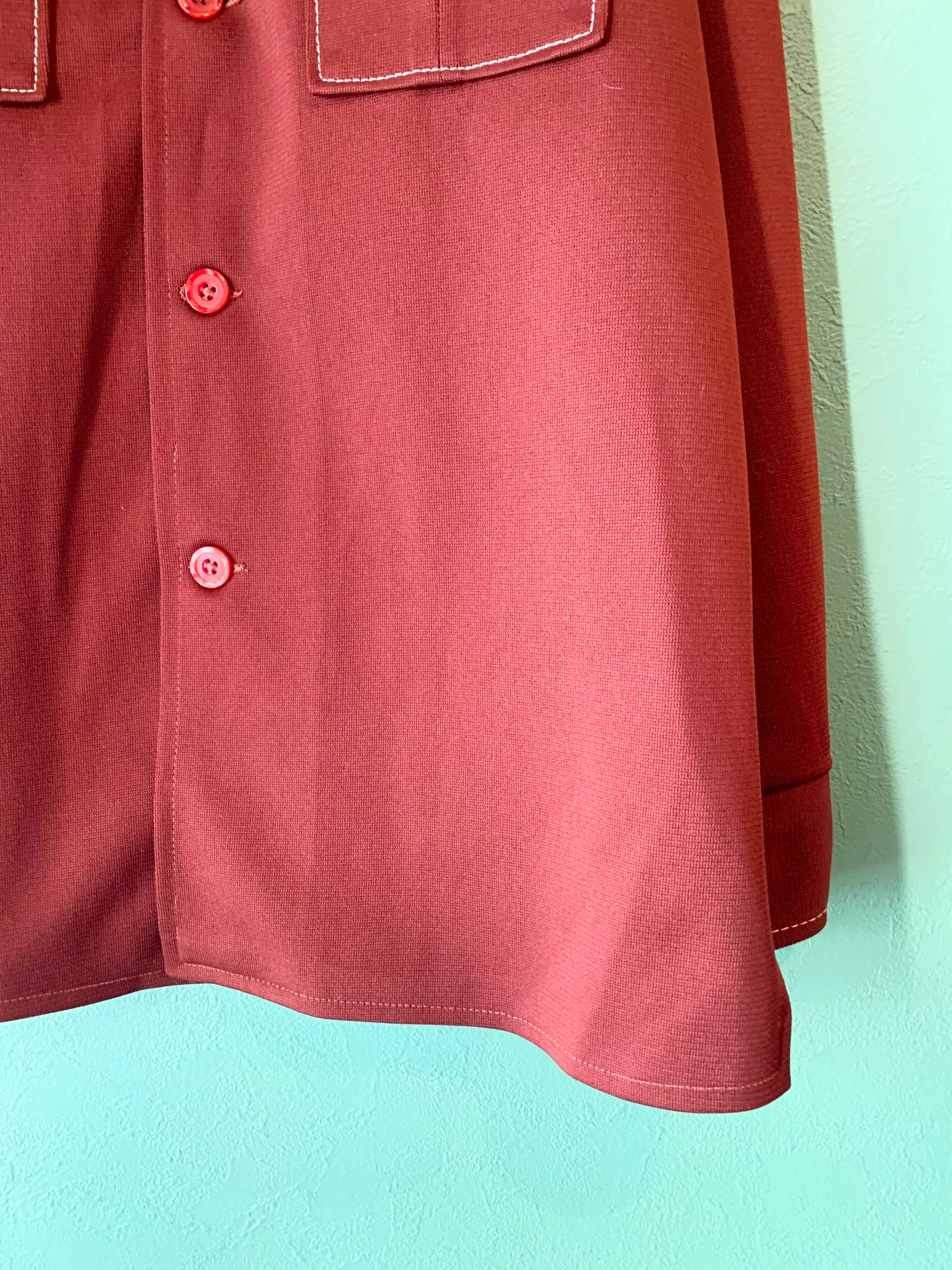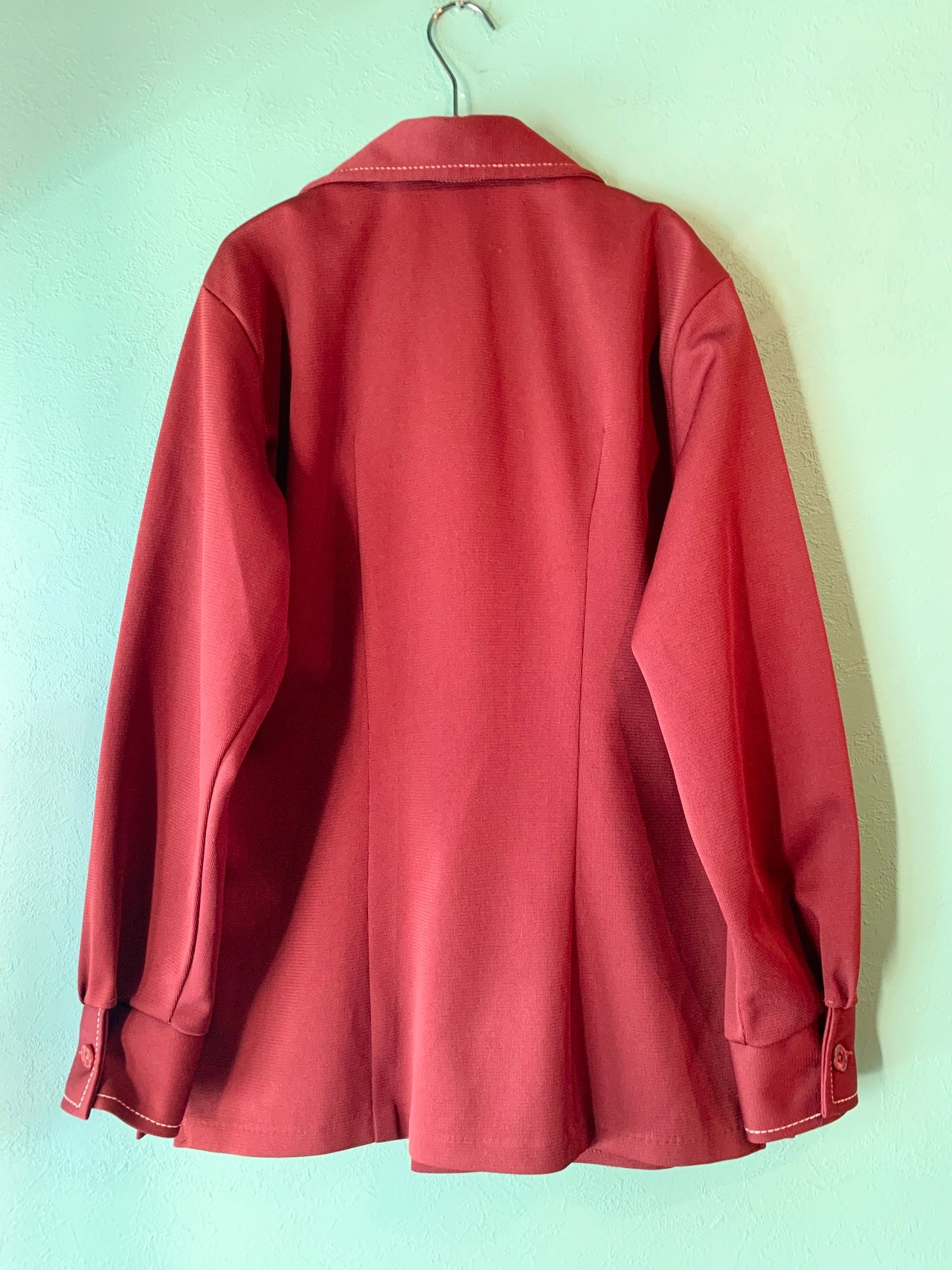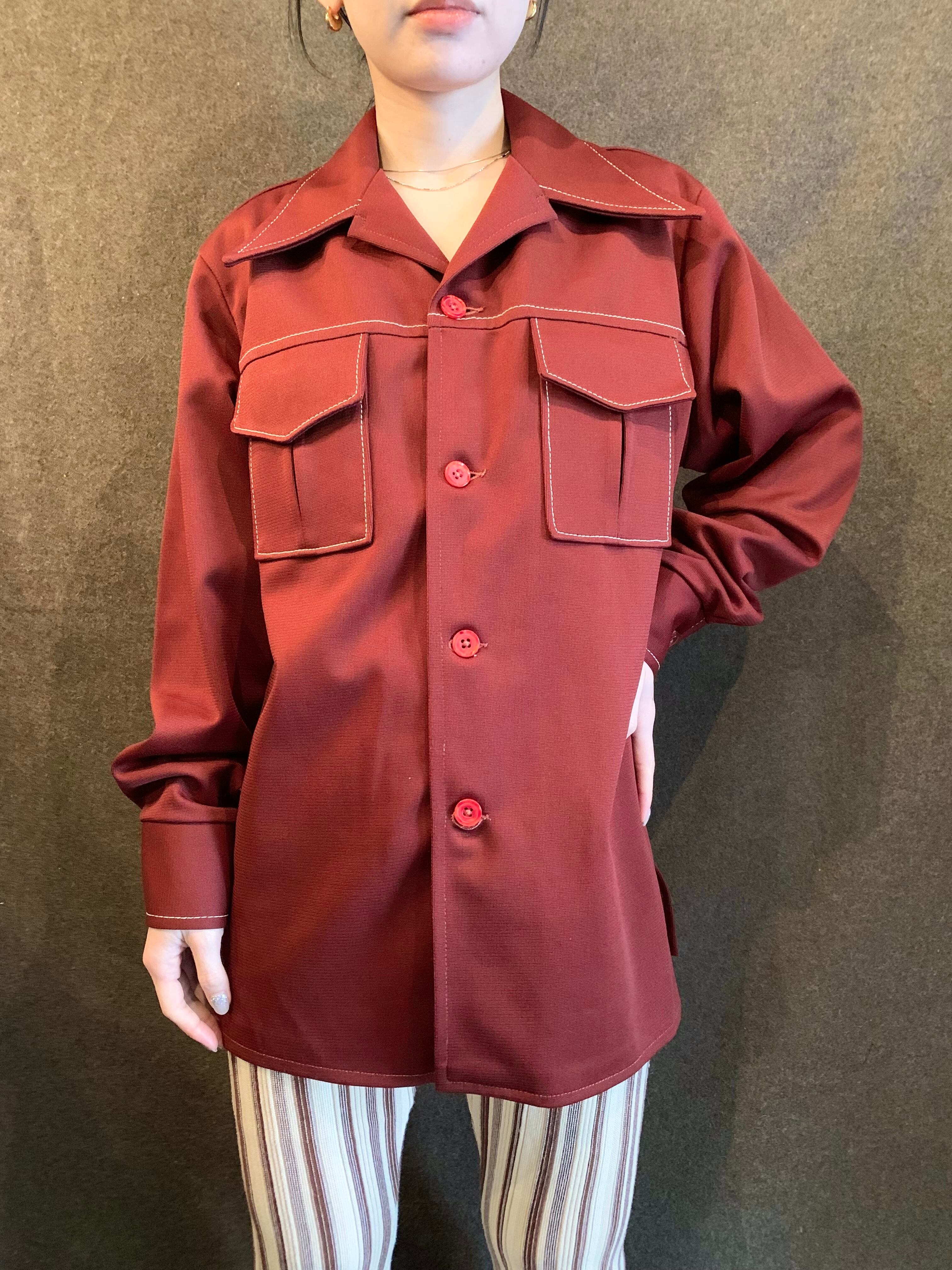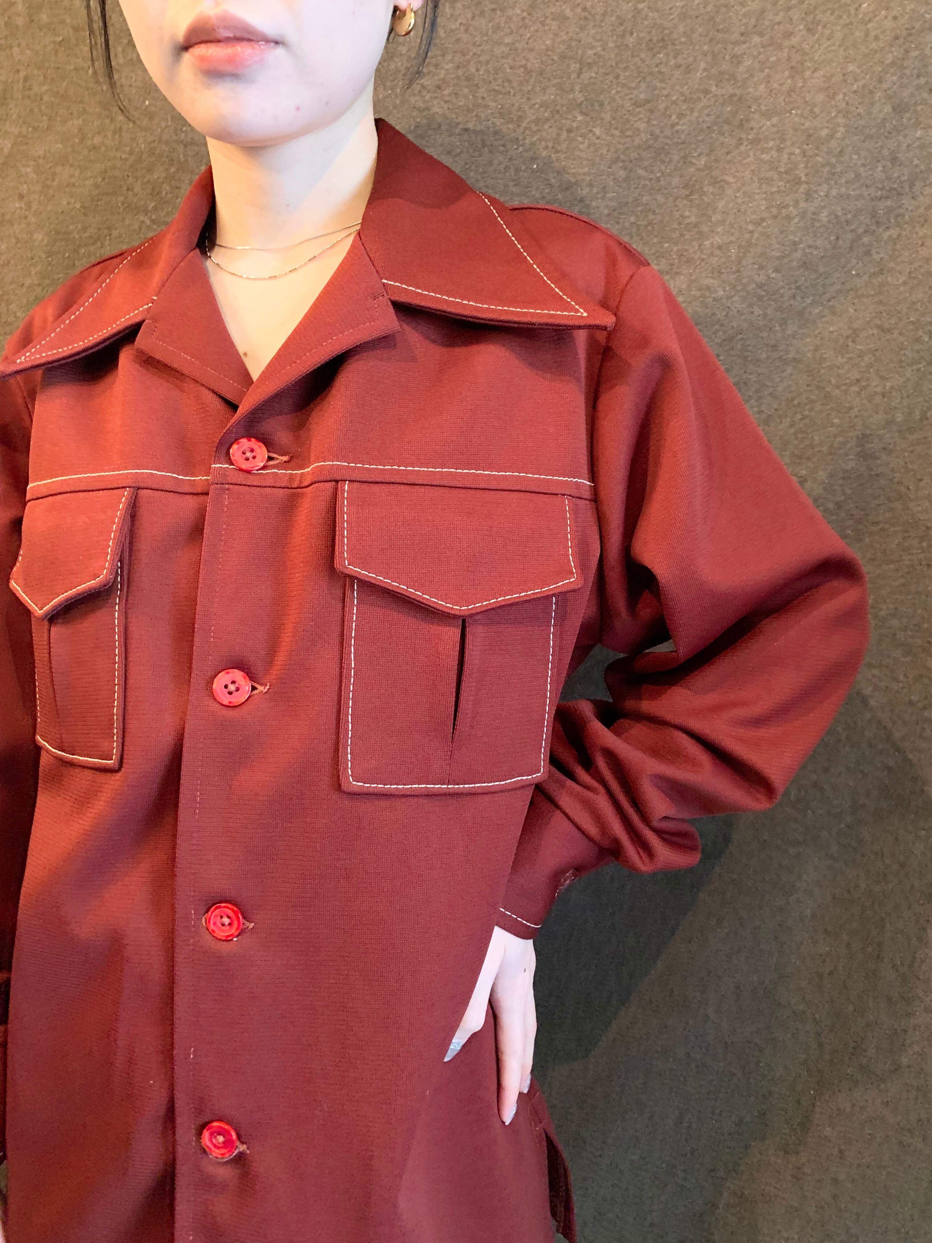 こちらは70年代特有のハリ感のあるポリエステル生地に大判の襟が可愛いシャツジャケット。