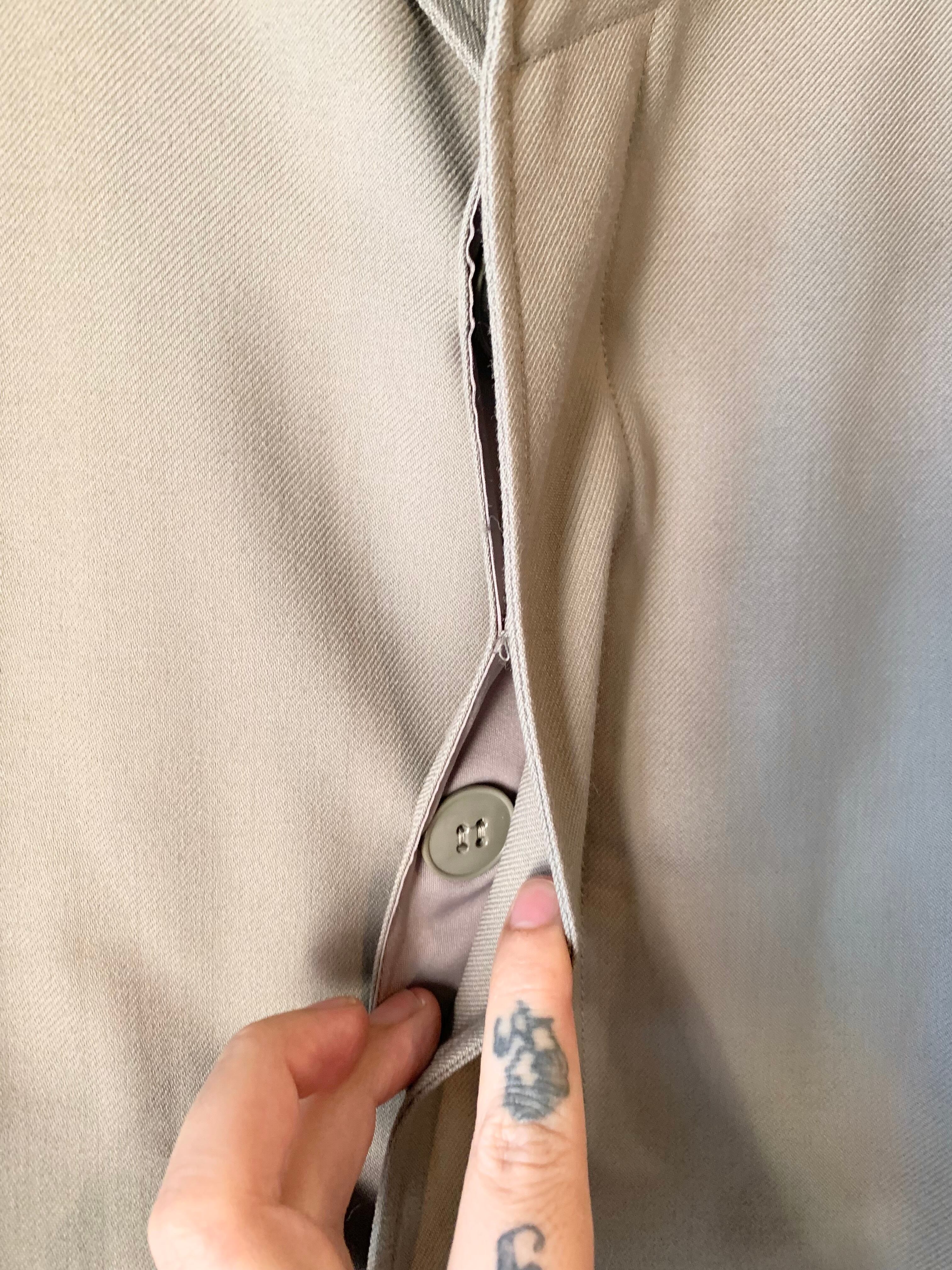 フロントはボタン止めで、両サイドにはポケット、左胸内側にもポケット付きです。軍物ながらもどこか品があり、独特なグレーベージュは野暮ったさを感じないフランス軍ならではのアイテムかと思います。