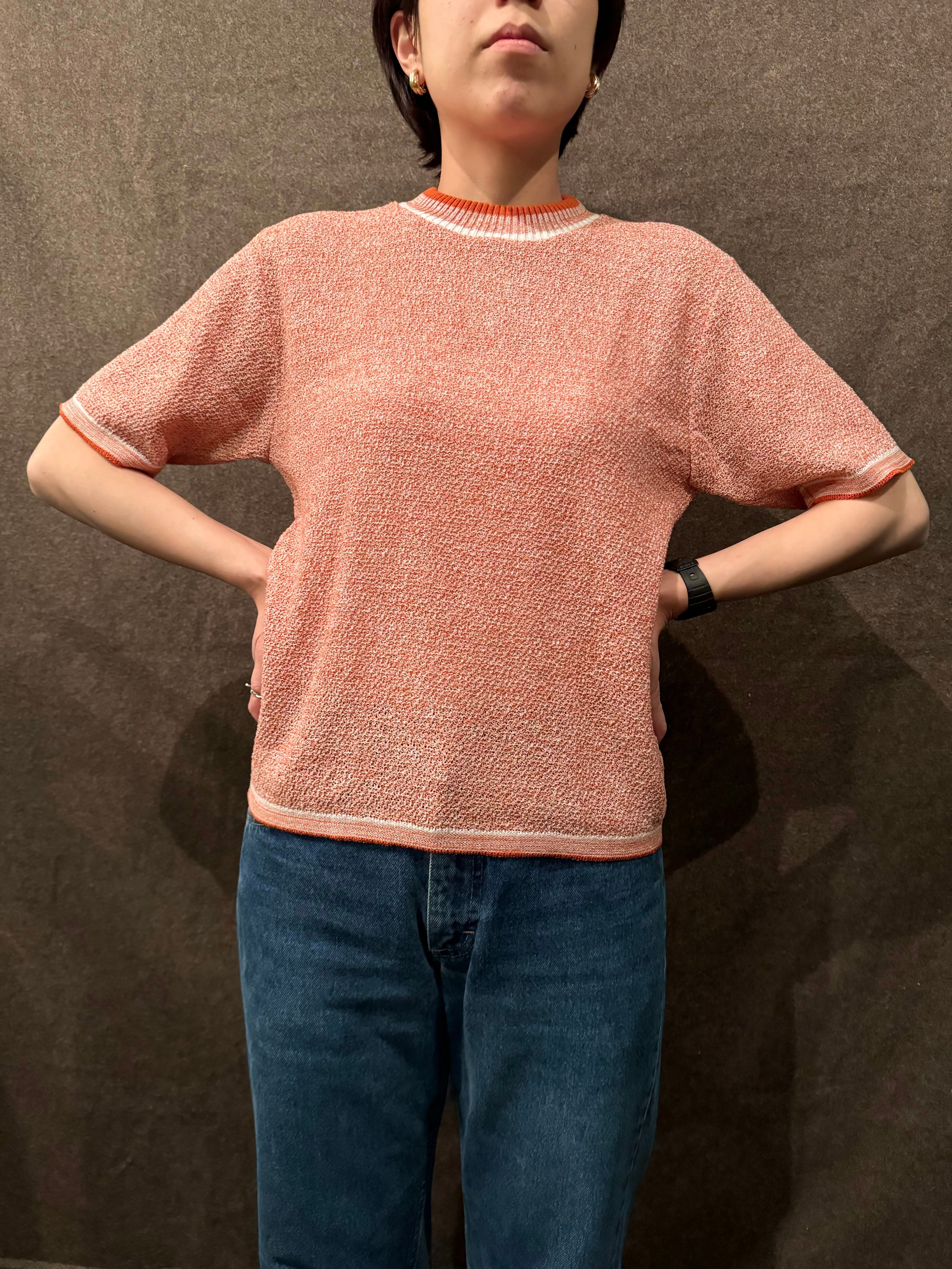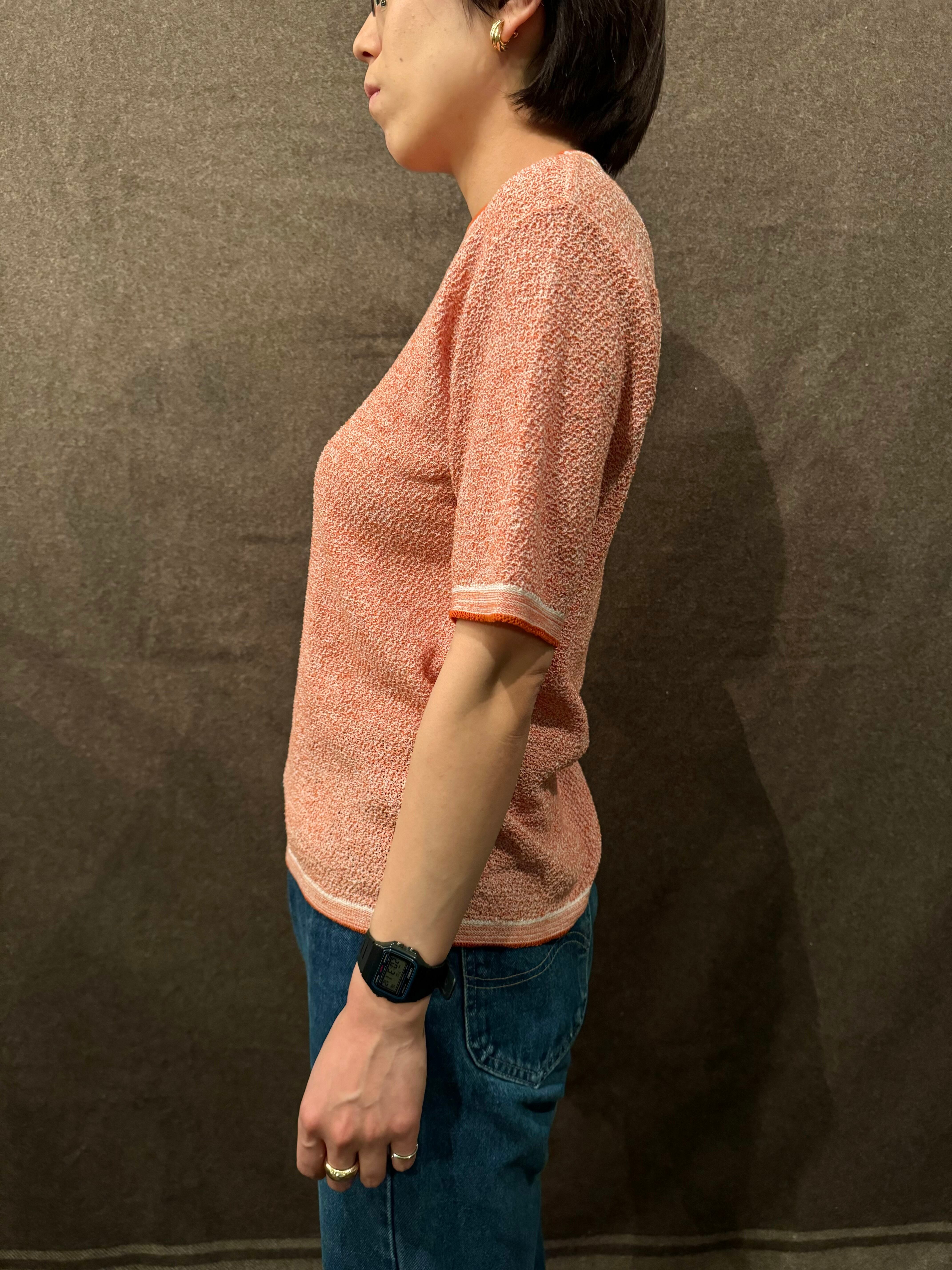 リンガーTのようなネック、袖、裾にラインデザインがあり、パイル地に近い素材感になっています。