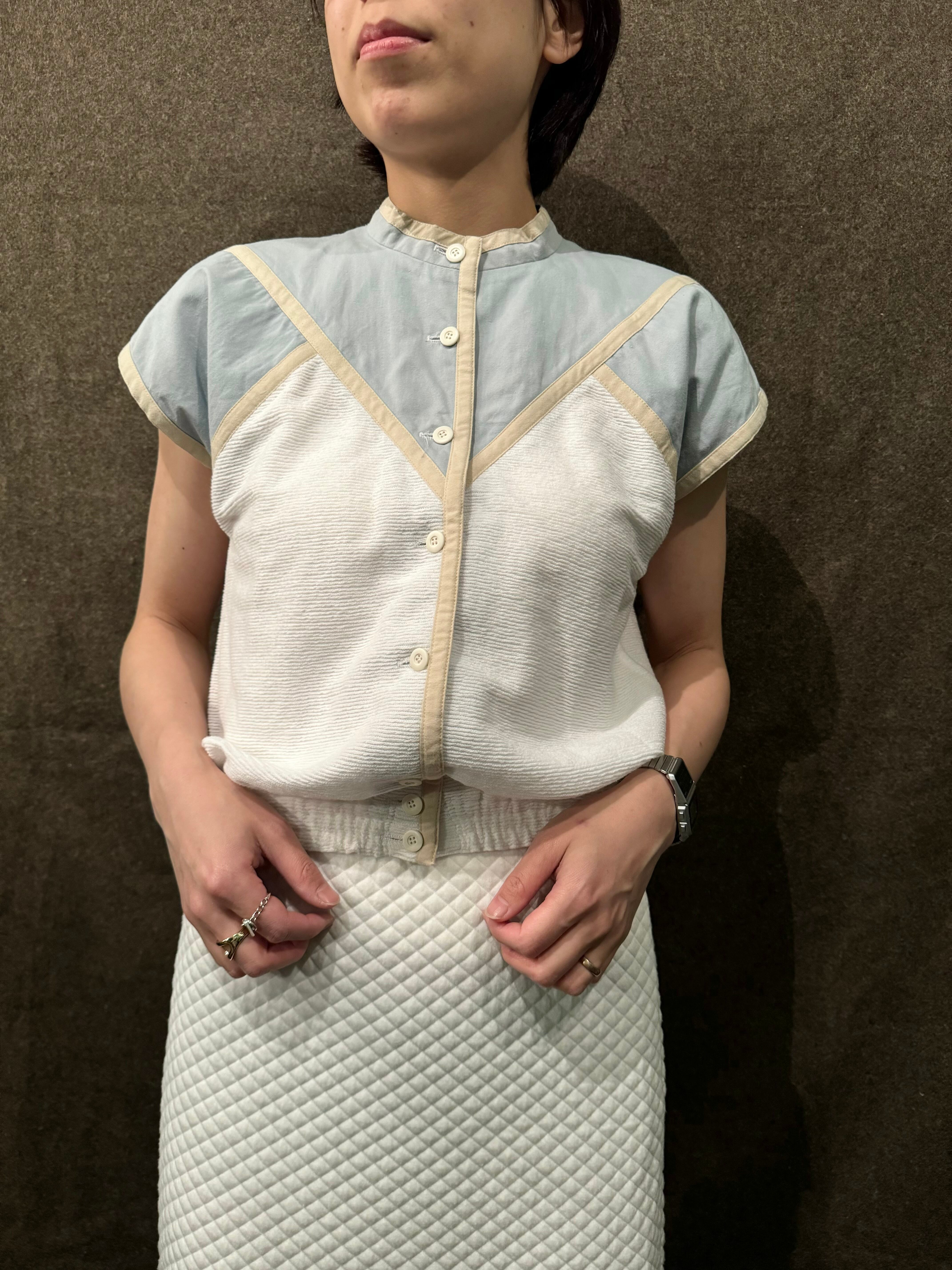 ブルーの部分はシャツのような生地感で白の切り替わった部分はパイルのようや柔らかい生地となった古着ならではのデザイン性◎