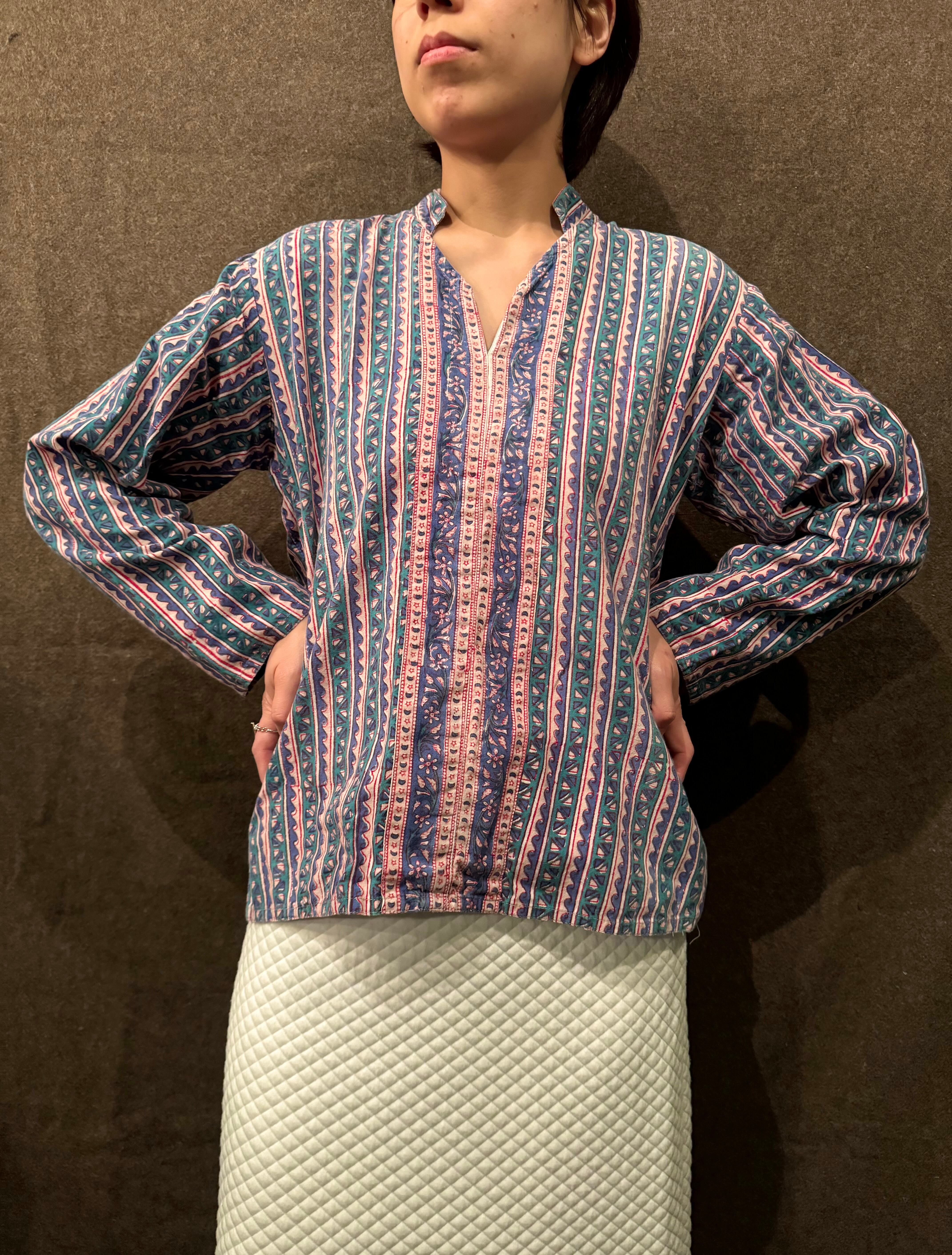 80〜90s 総柄 スキッパーシャツ【レディース】