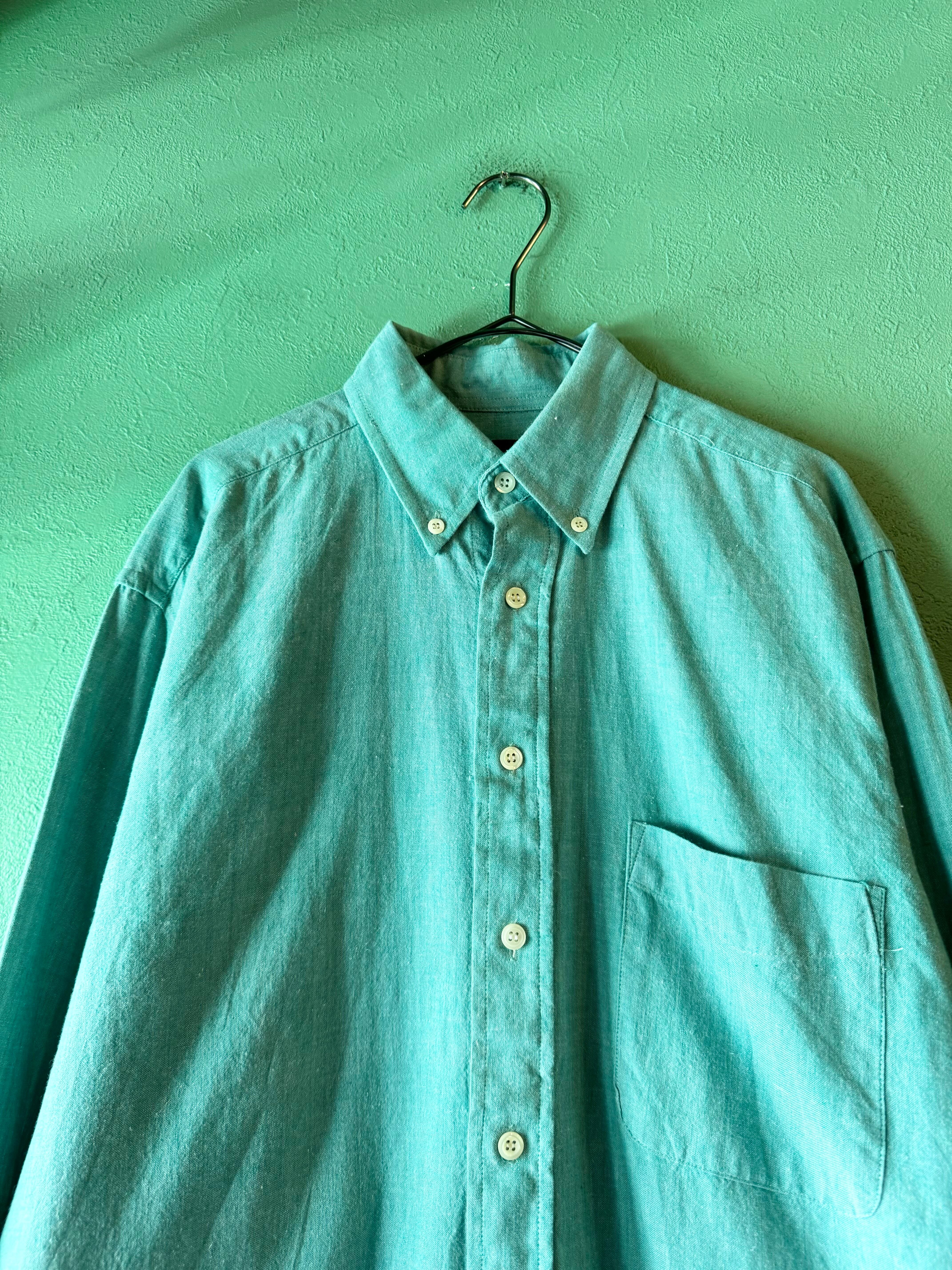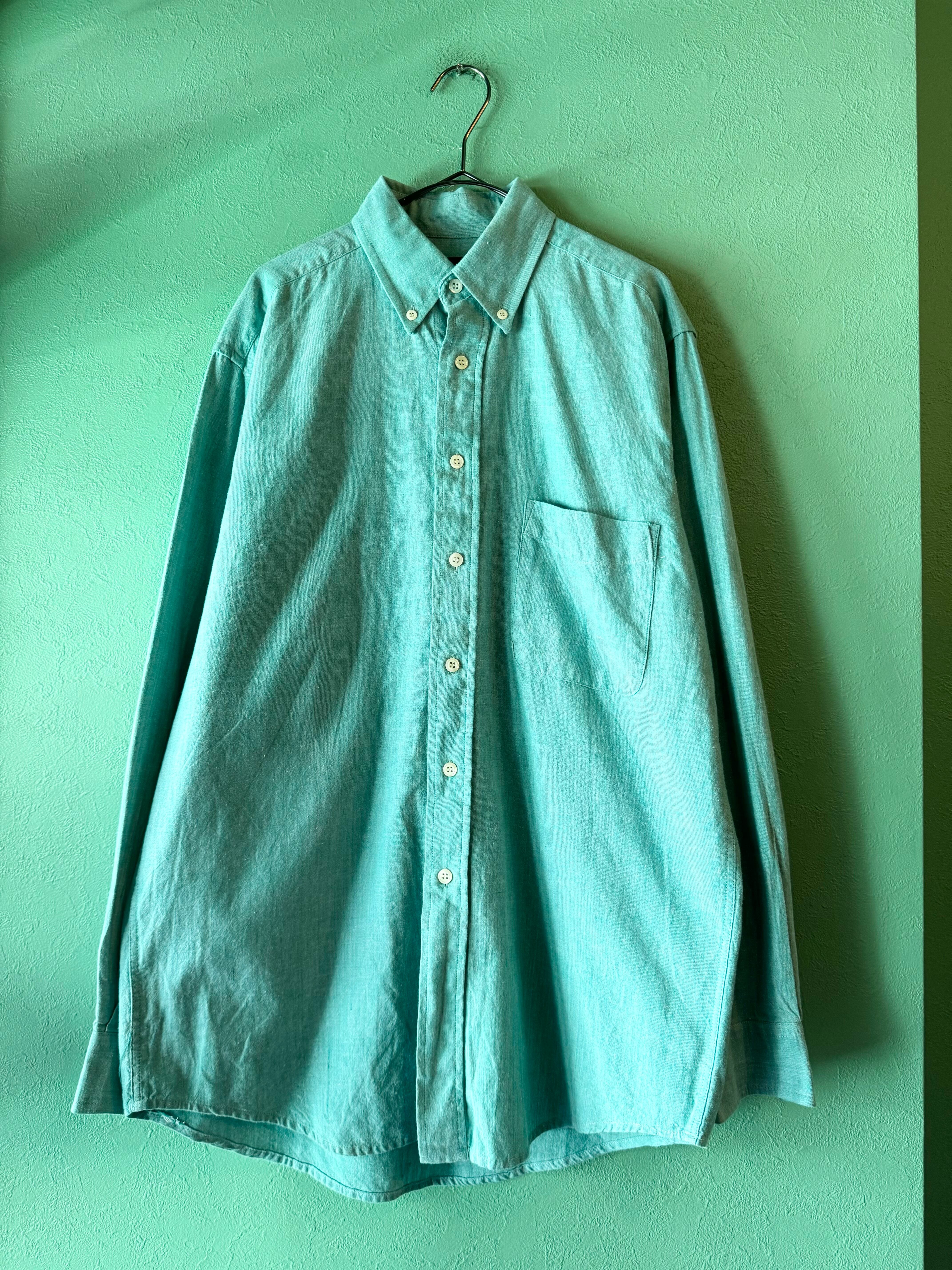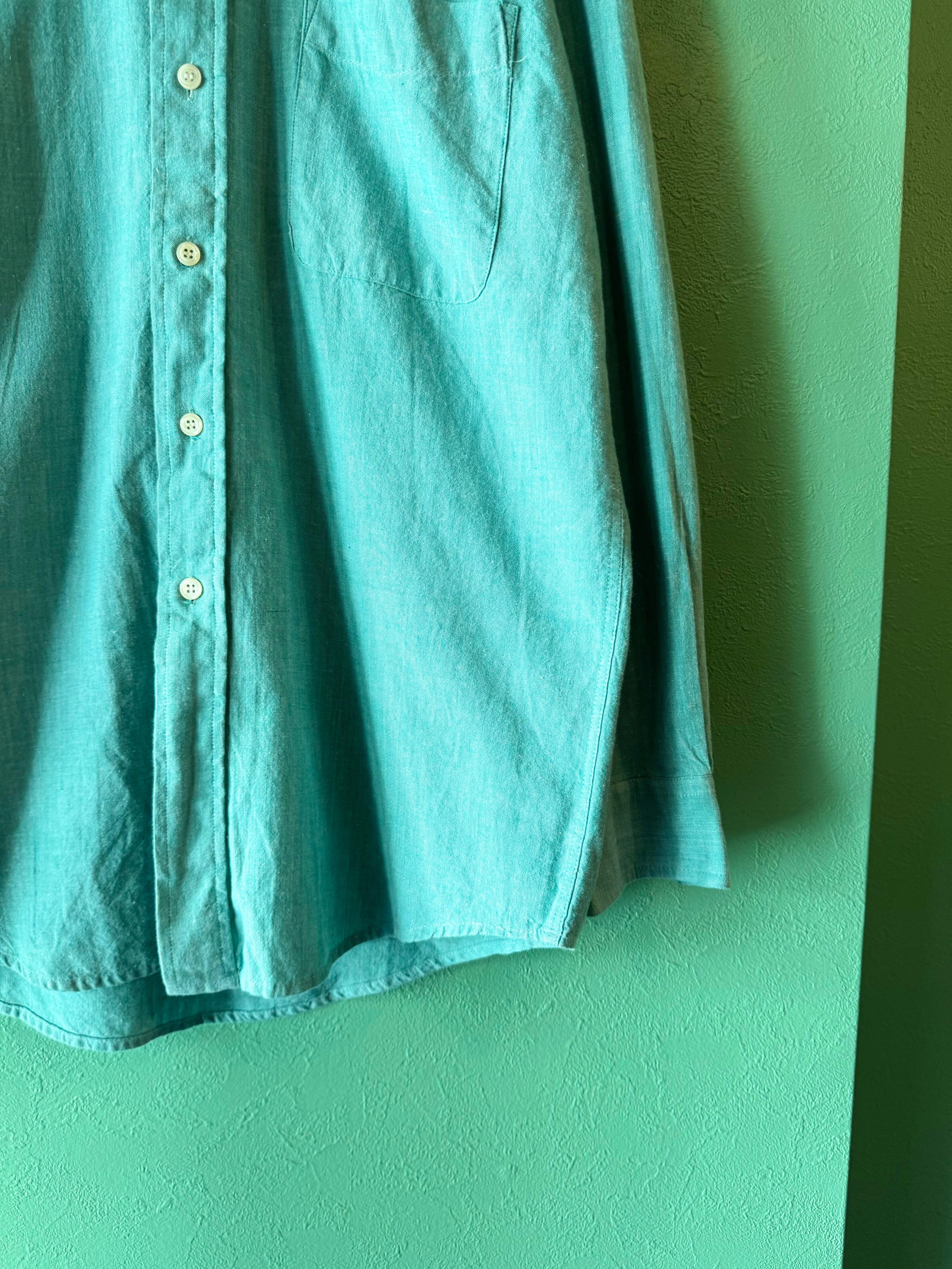 絶妙な淡いグリーンカラーにリネンのような風合いがカッコいいシャツ。