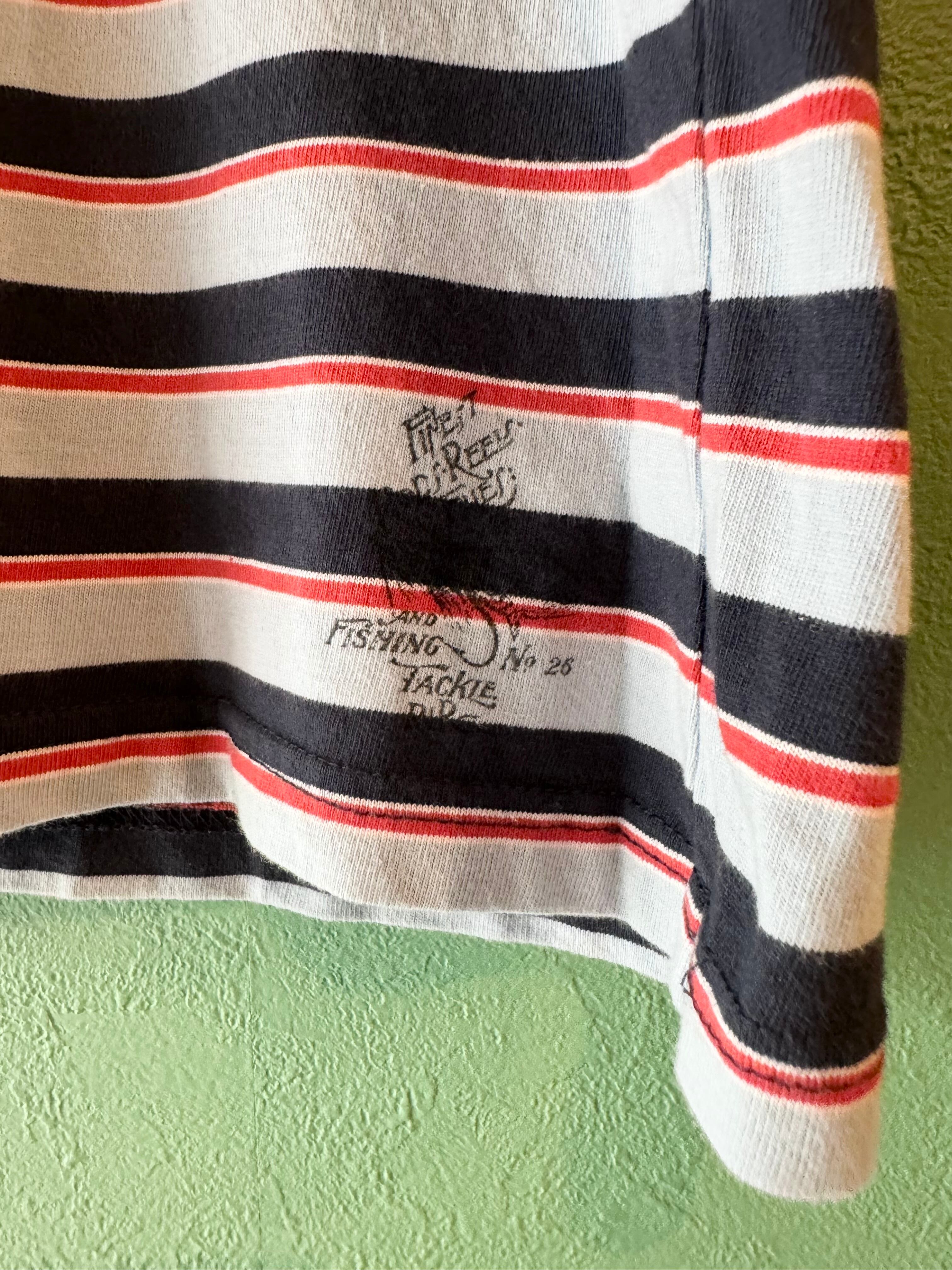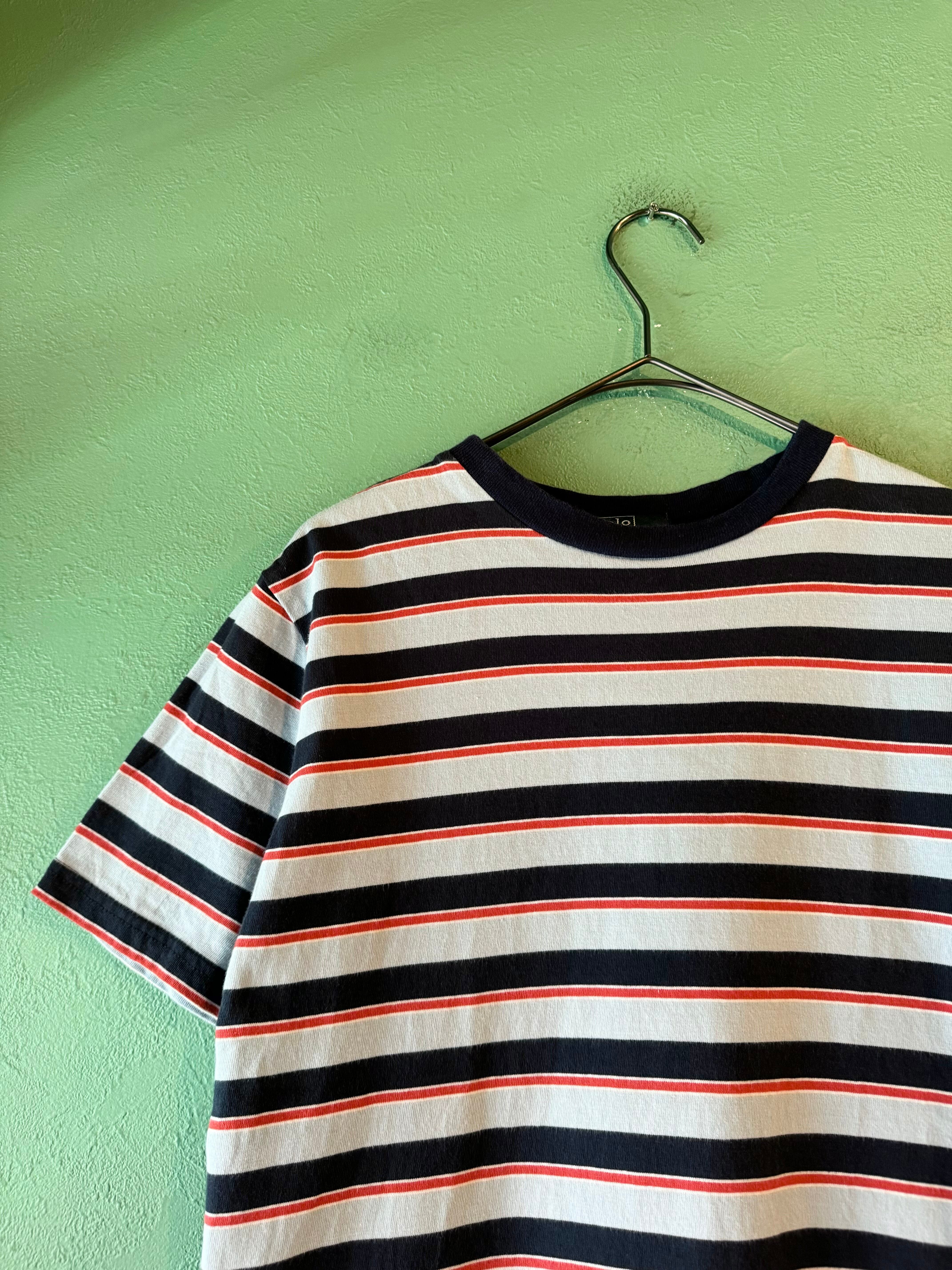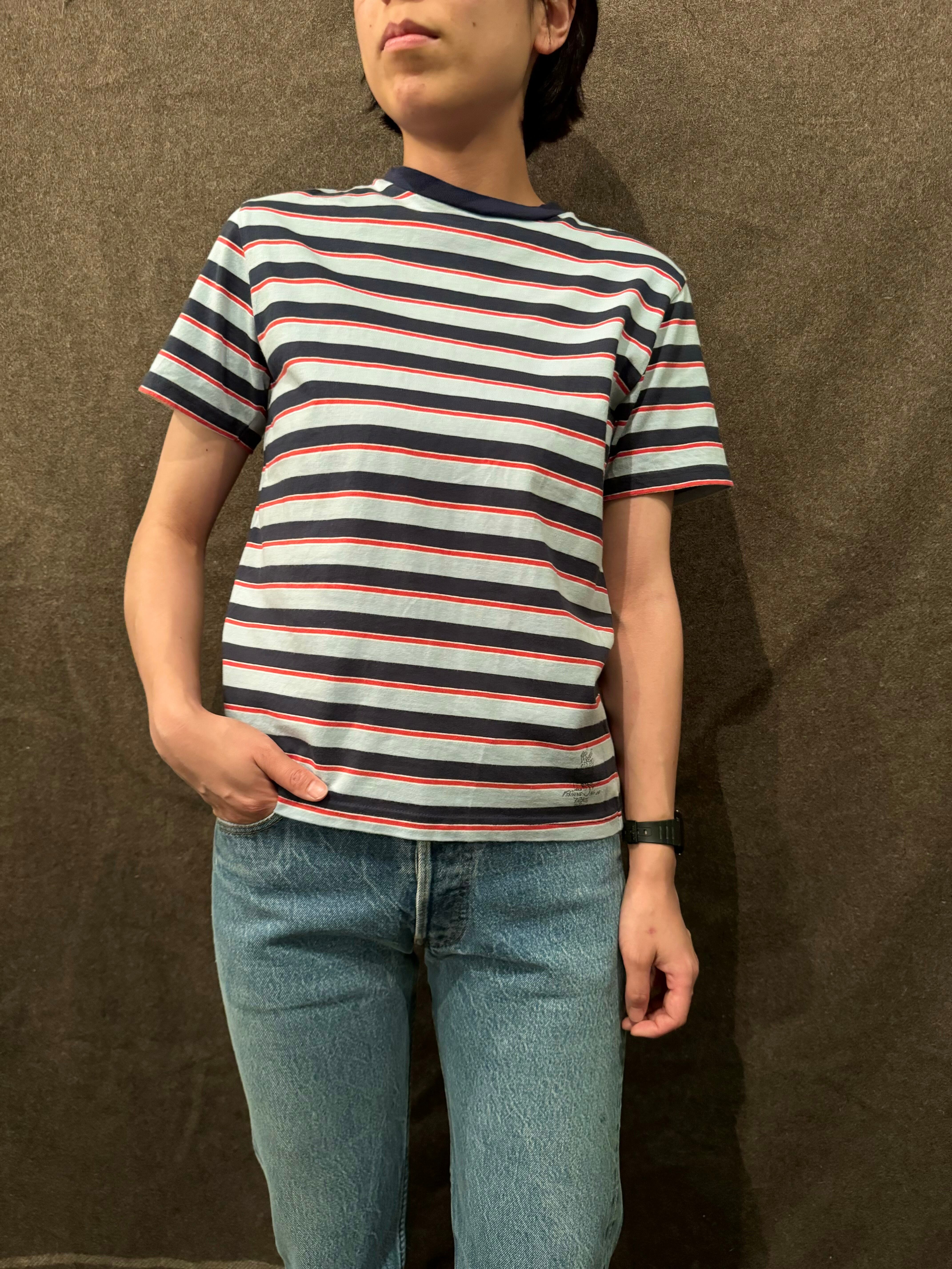 こちらは水色×ネイビー×レッド×ホワイトのトリコロールのような可愛いカラーリングのTシャツ。