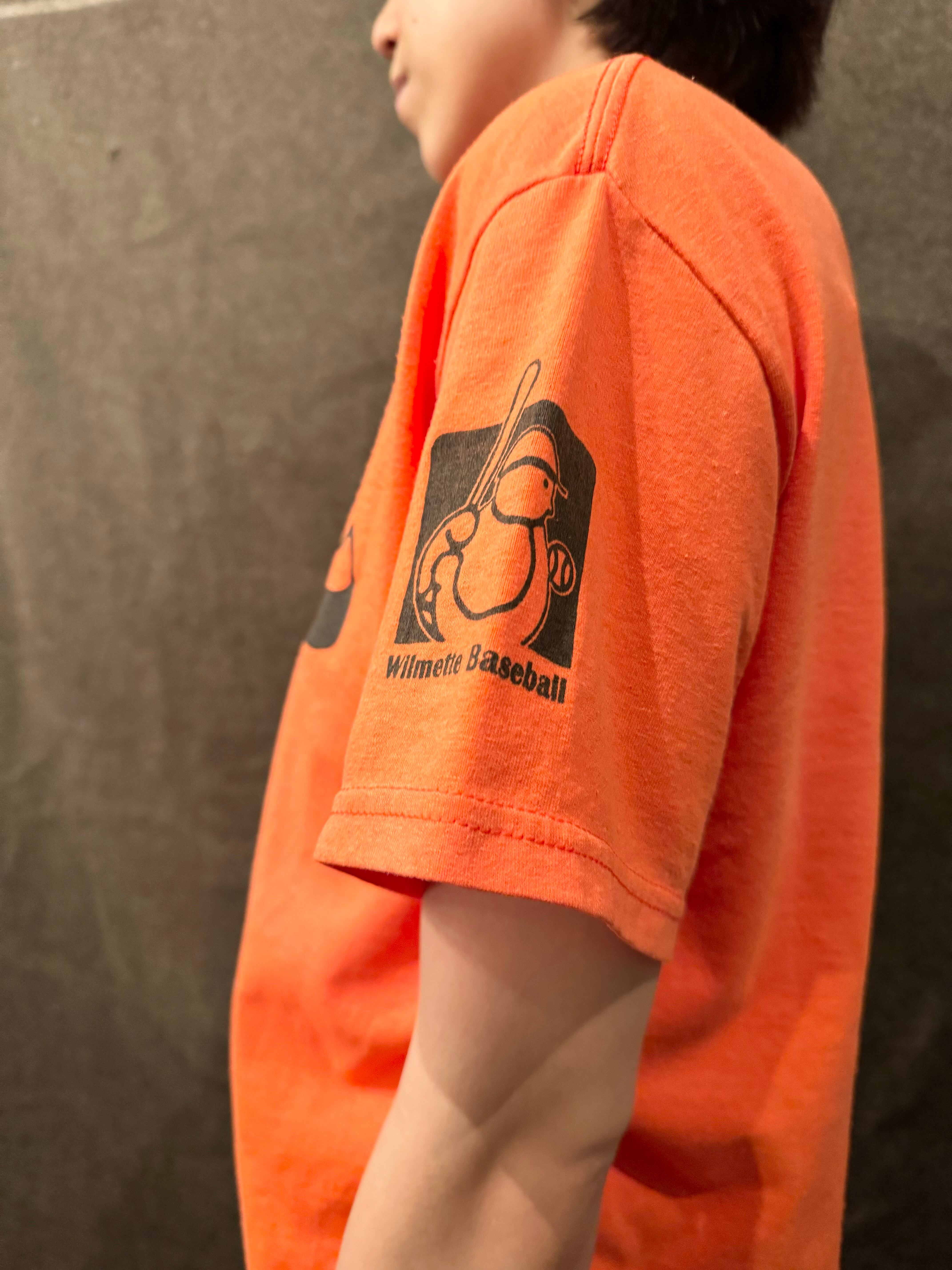 可愛らしいビビッドなオレンジカラーにフロントには球団関係、背面には背番号、左袖にさりげなくプリントの入ったデザインになっています。