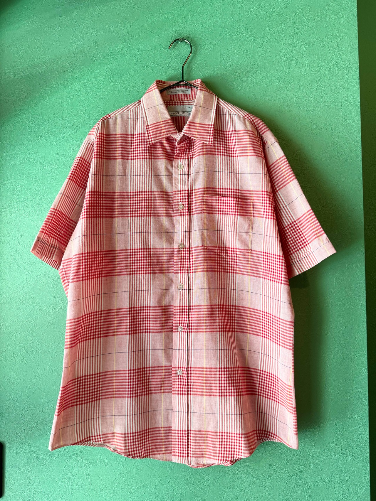 こちらはレッドをベースとした可愛らしいカラーリングのチェックパターンシャツ。