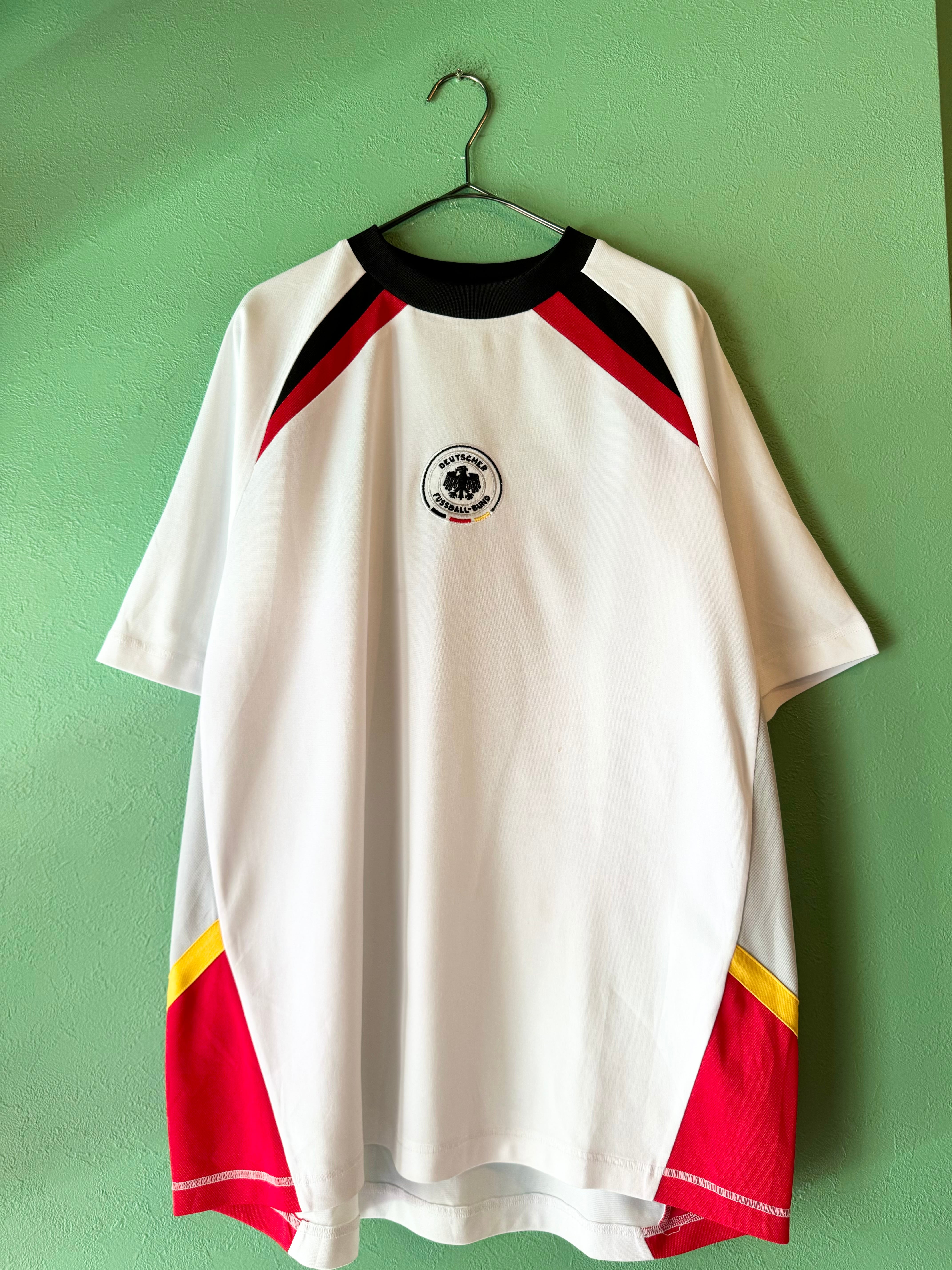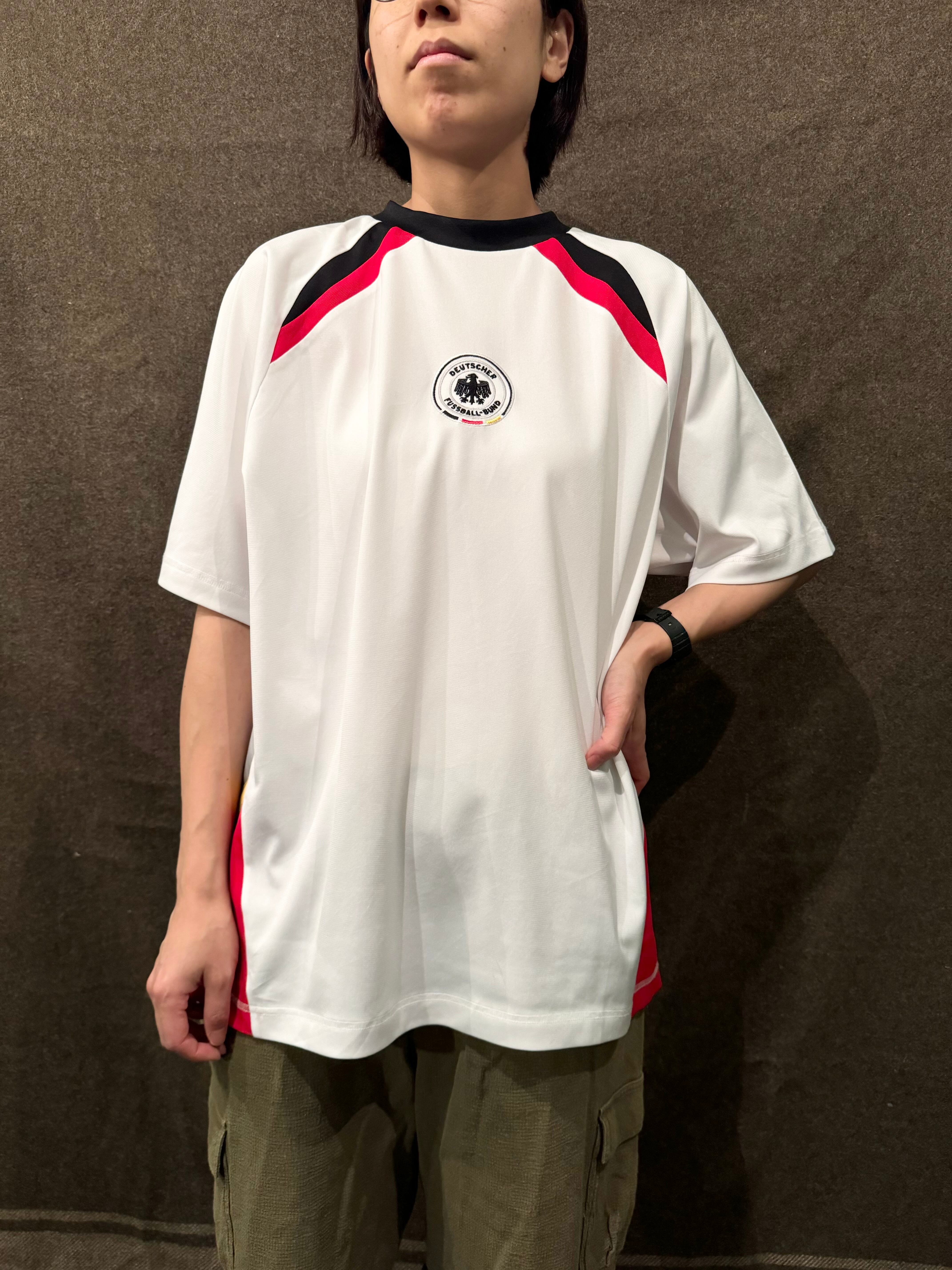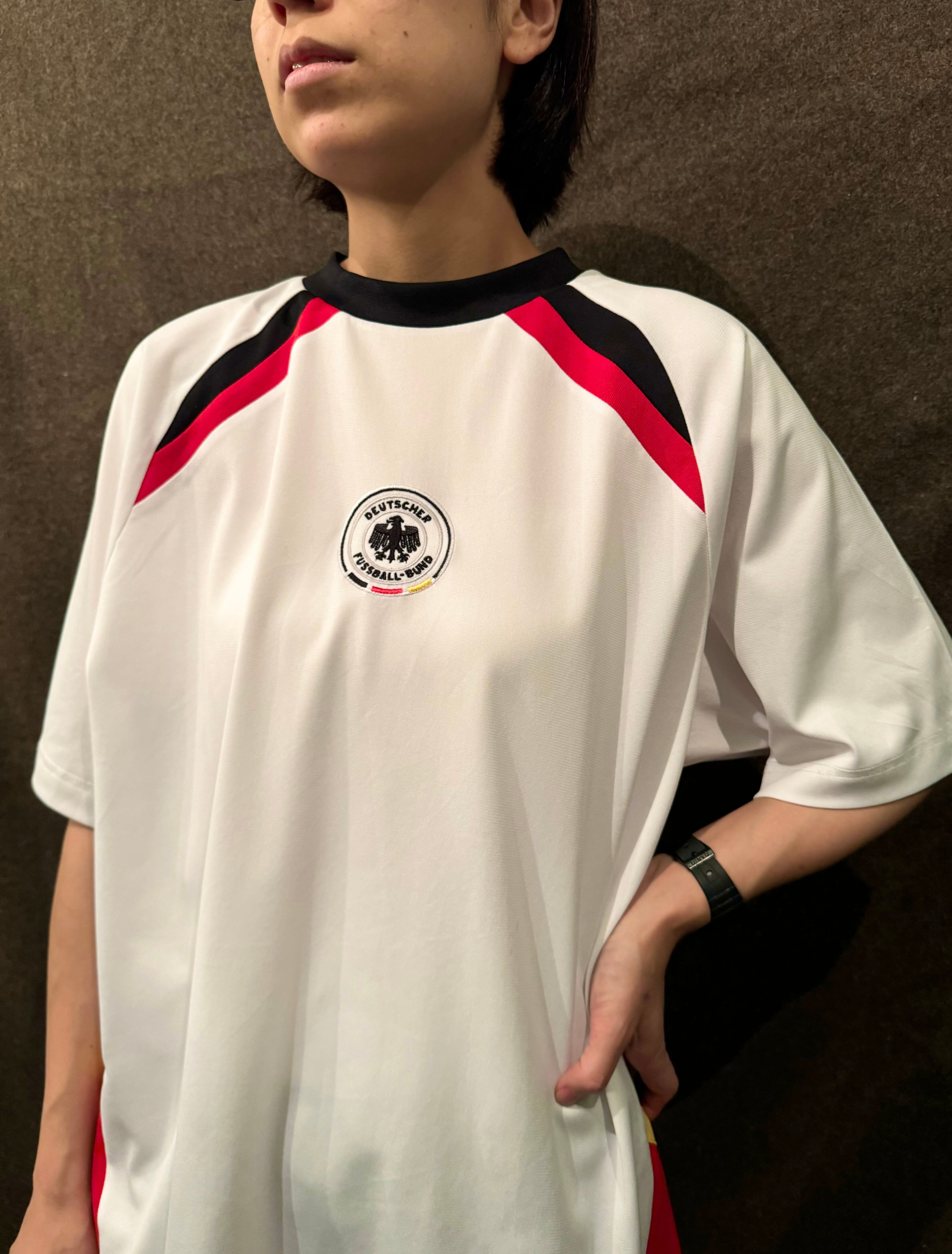ドイツサッカー連盟のオフィシャルアイテムでもある為、現地で購入されたであろう背景が面白い古着かと思います。