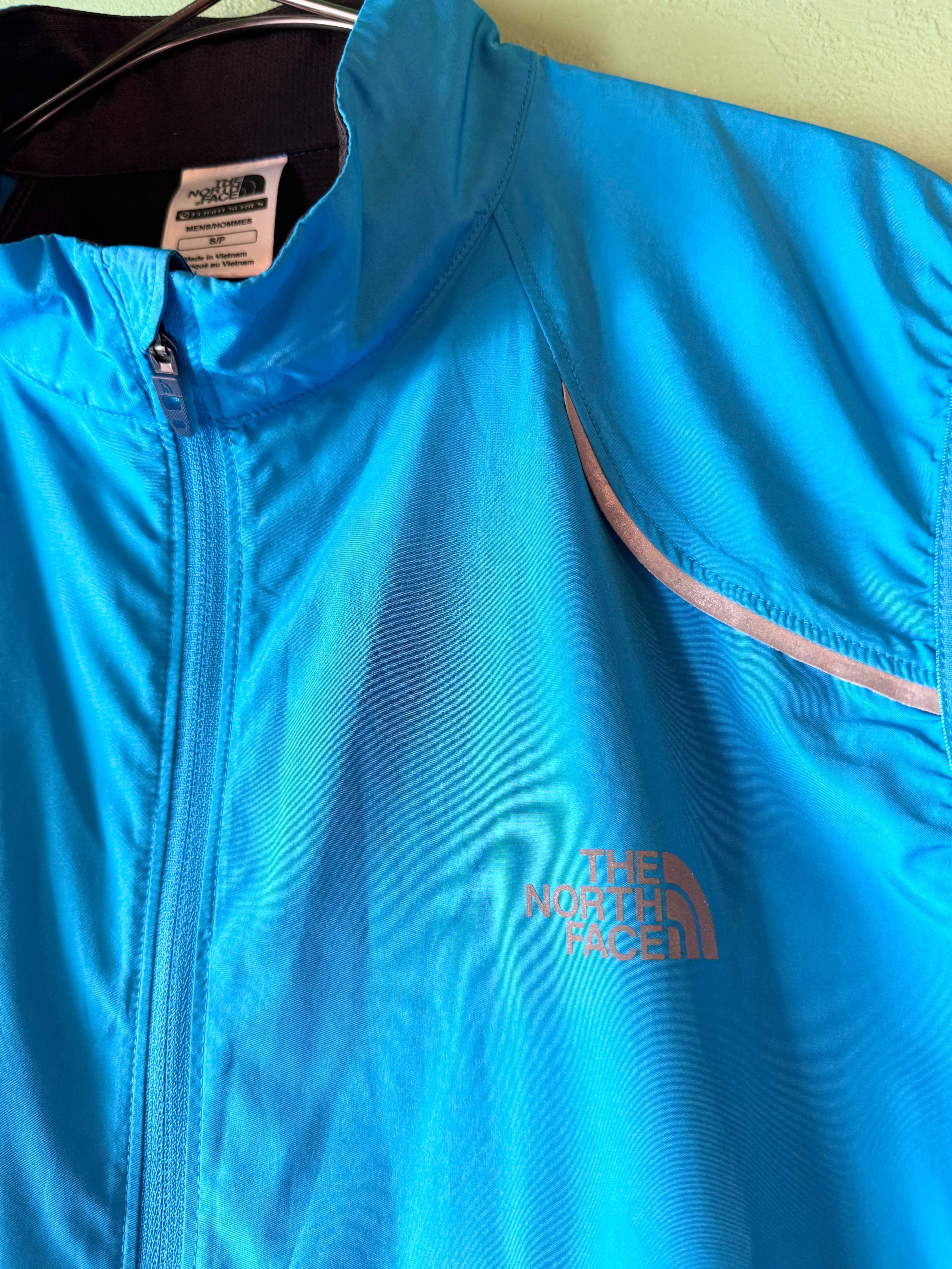 こちらはトレイルランニング用のジップベストで、可愛らしい水色にリフレクターやメッシュ切り替えと機能性抜群のデザインになっています。