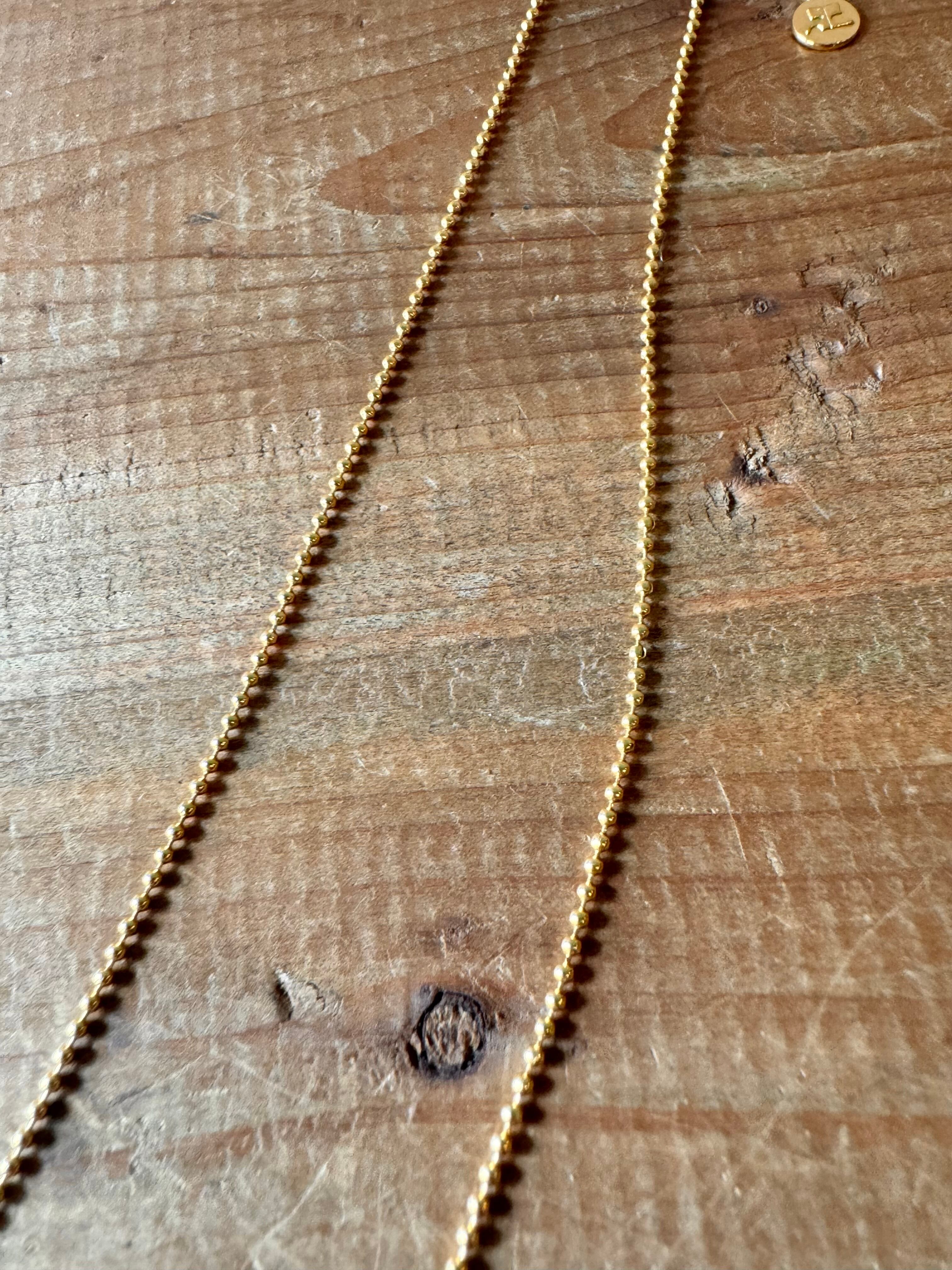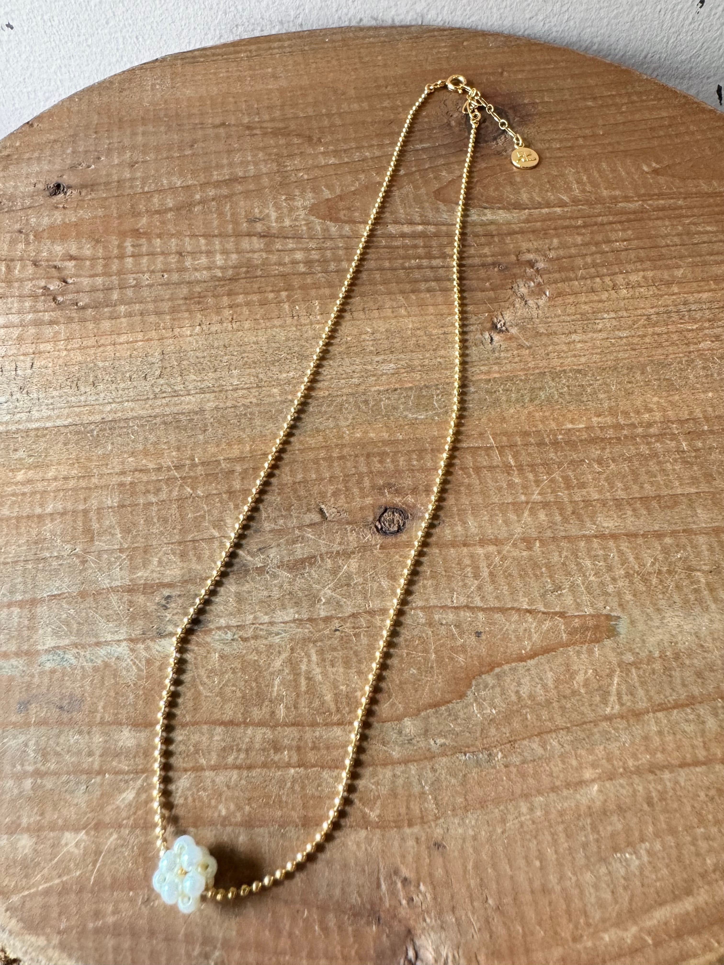 こちらは高級感のあるゴールドのボールチェーンにビーズの花?のようなモチーフのついた可愛らしいネックレス。
