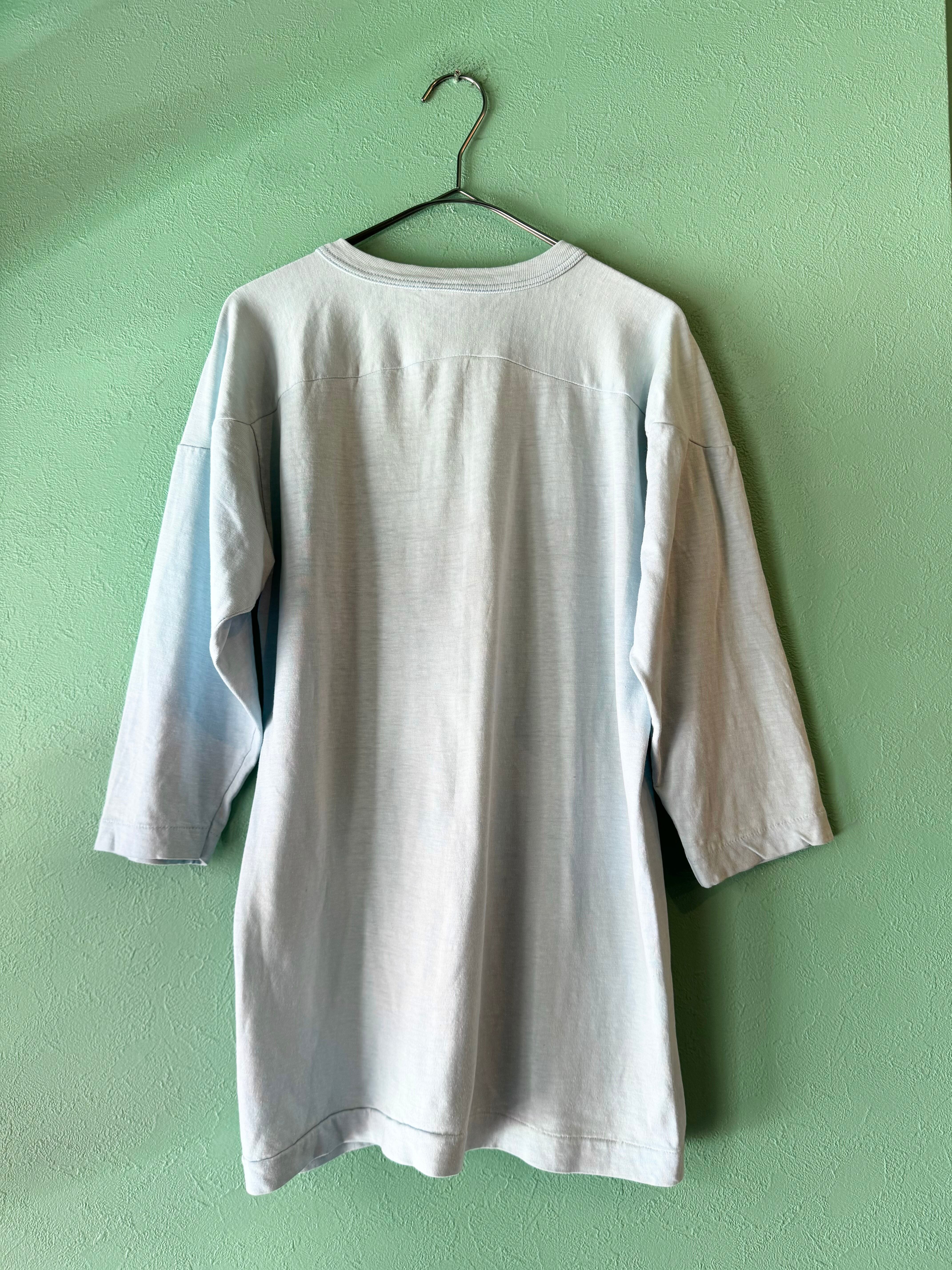 フェードした淡い水色が可愛く、ポリエステル×コットン混合のくたっとしたヴィンテージならではの生地感もたまりません。