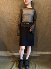ベーシックなブラックカラーに膝〜膝上丈のフレアシルエットになっています。