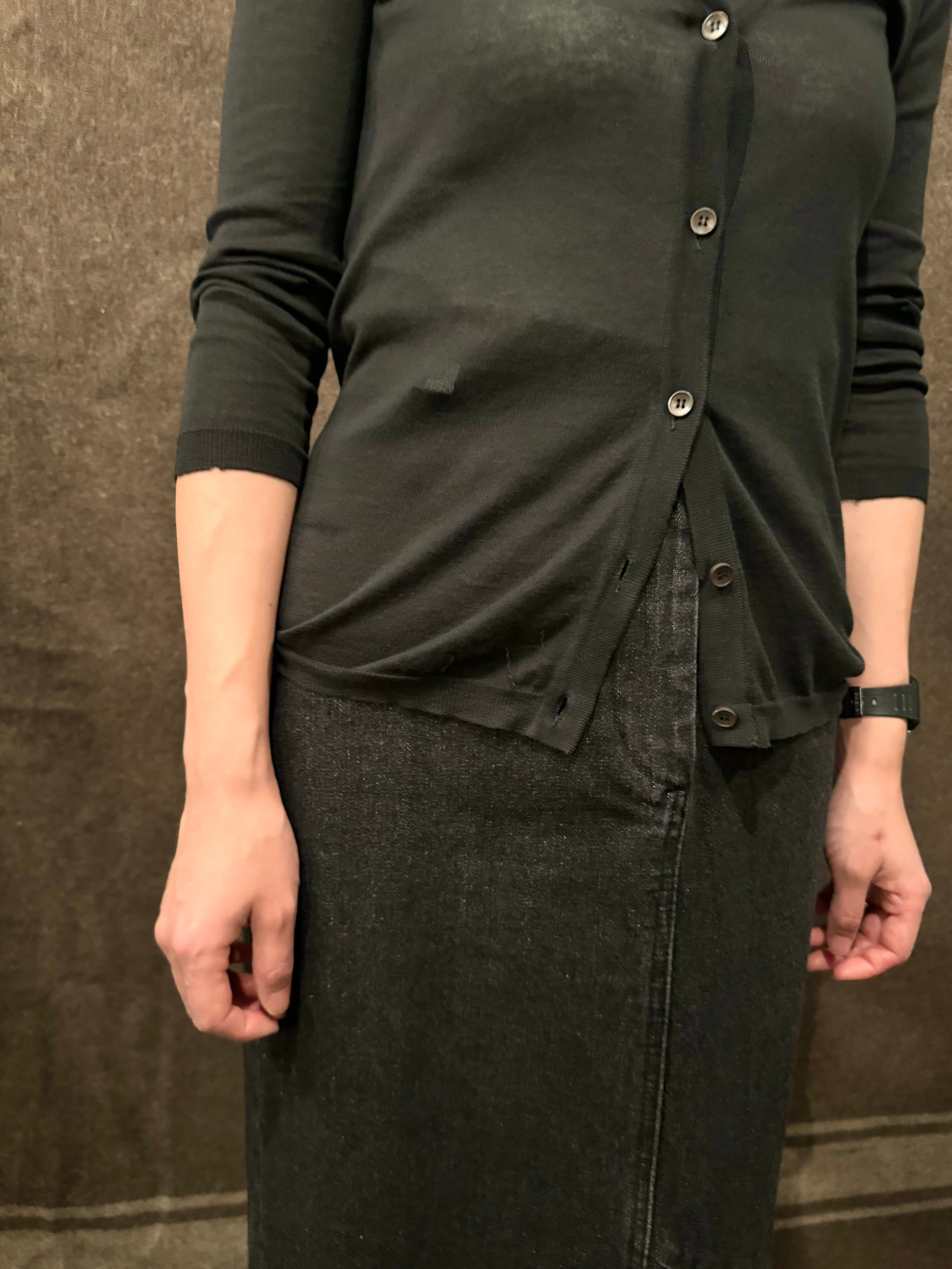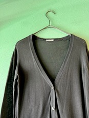 こちらはシンプルで使い勝手の良いブラックカラーのニットカーディガン。