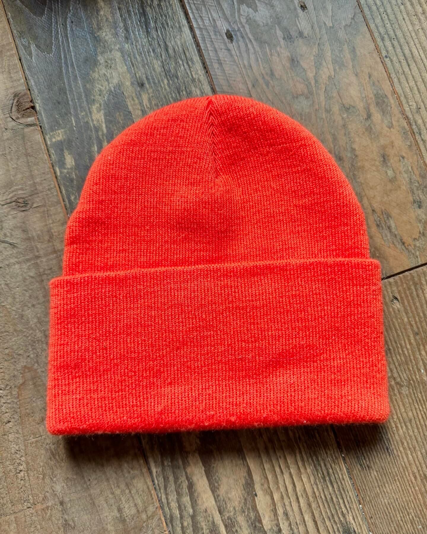 こちらは可愛らしいビビッドなオレンジカラーのニット帽。