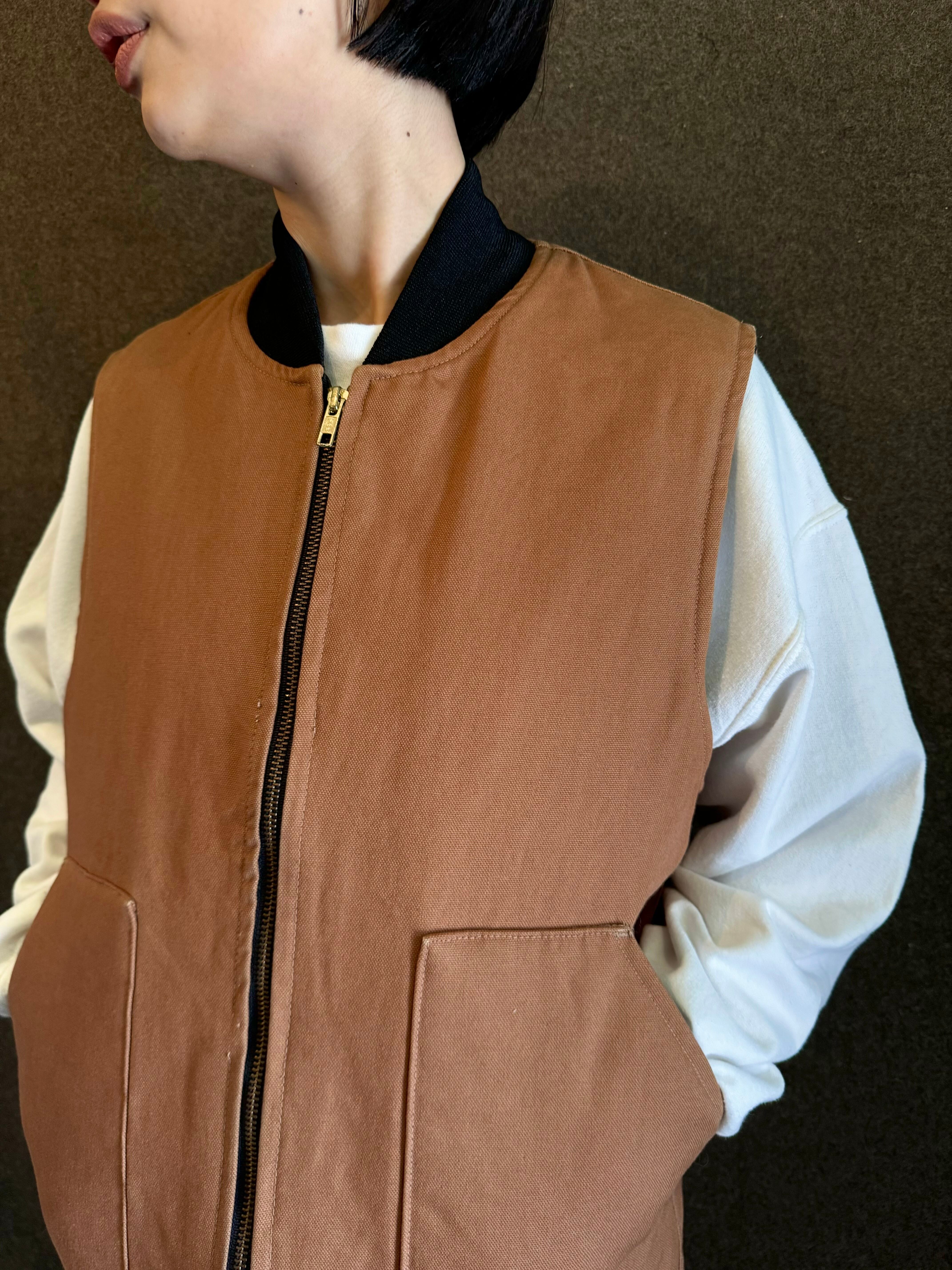ブラウンカラーのダック地を使用し、まるでカーハートのダックベストと見間違えてしまいそうなアメリカ古着らしいデザインになっています。