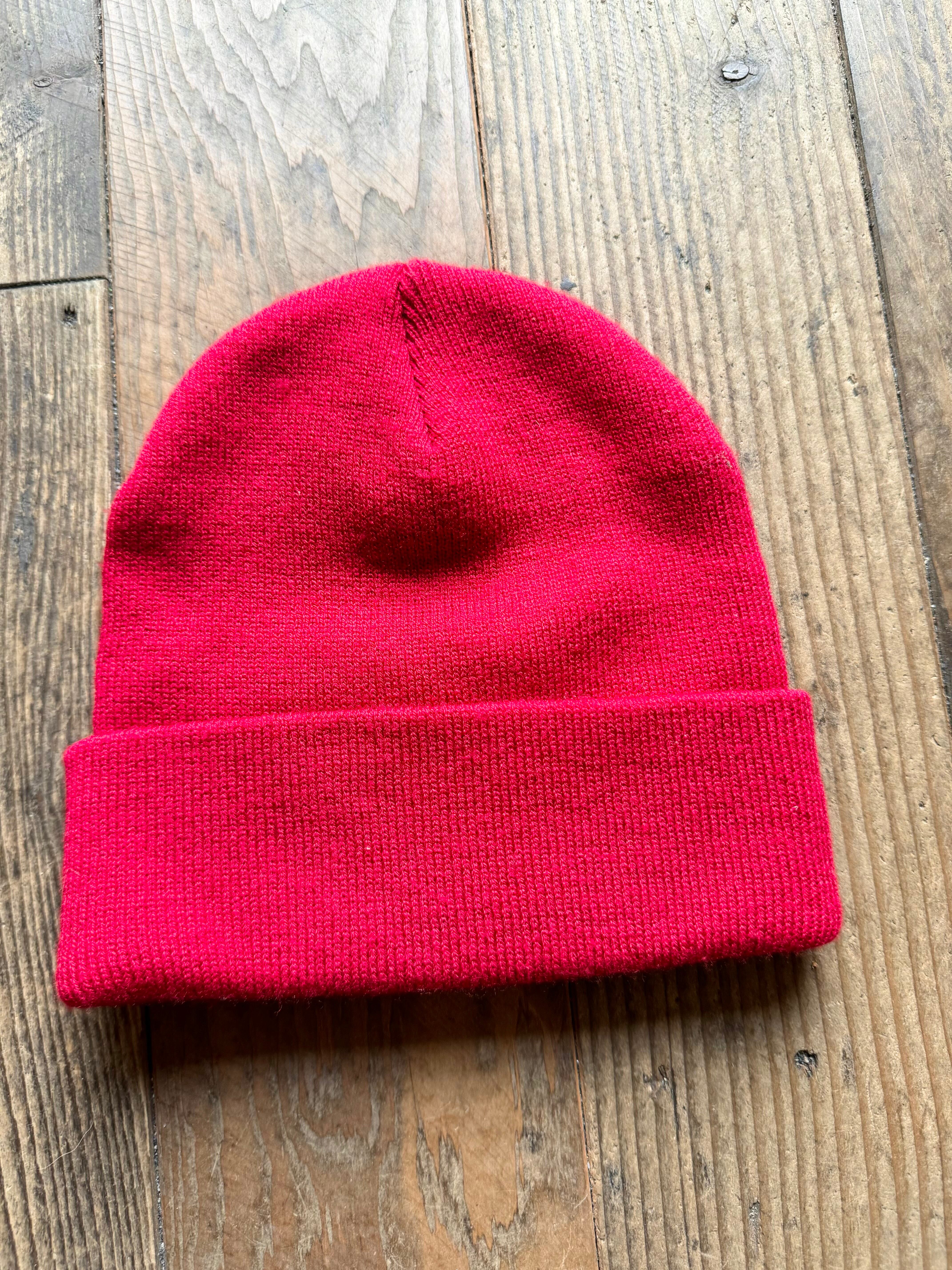 こちらはビビッドなレッドカラーに企業のようなブランドロゴデザインのワッペンがアクセントになっています。