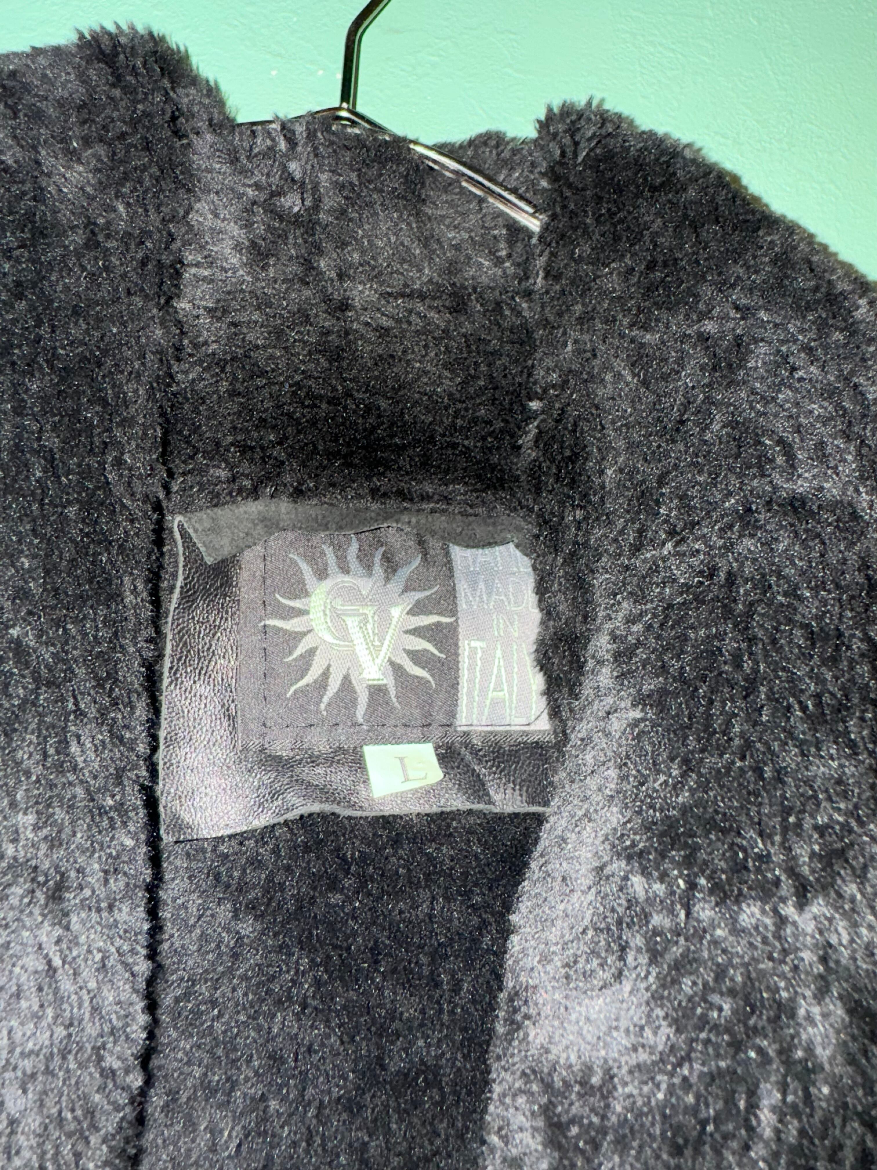 こちらはライニングのボアまでオールブラックカラーになったカッコ良いレザーコート。