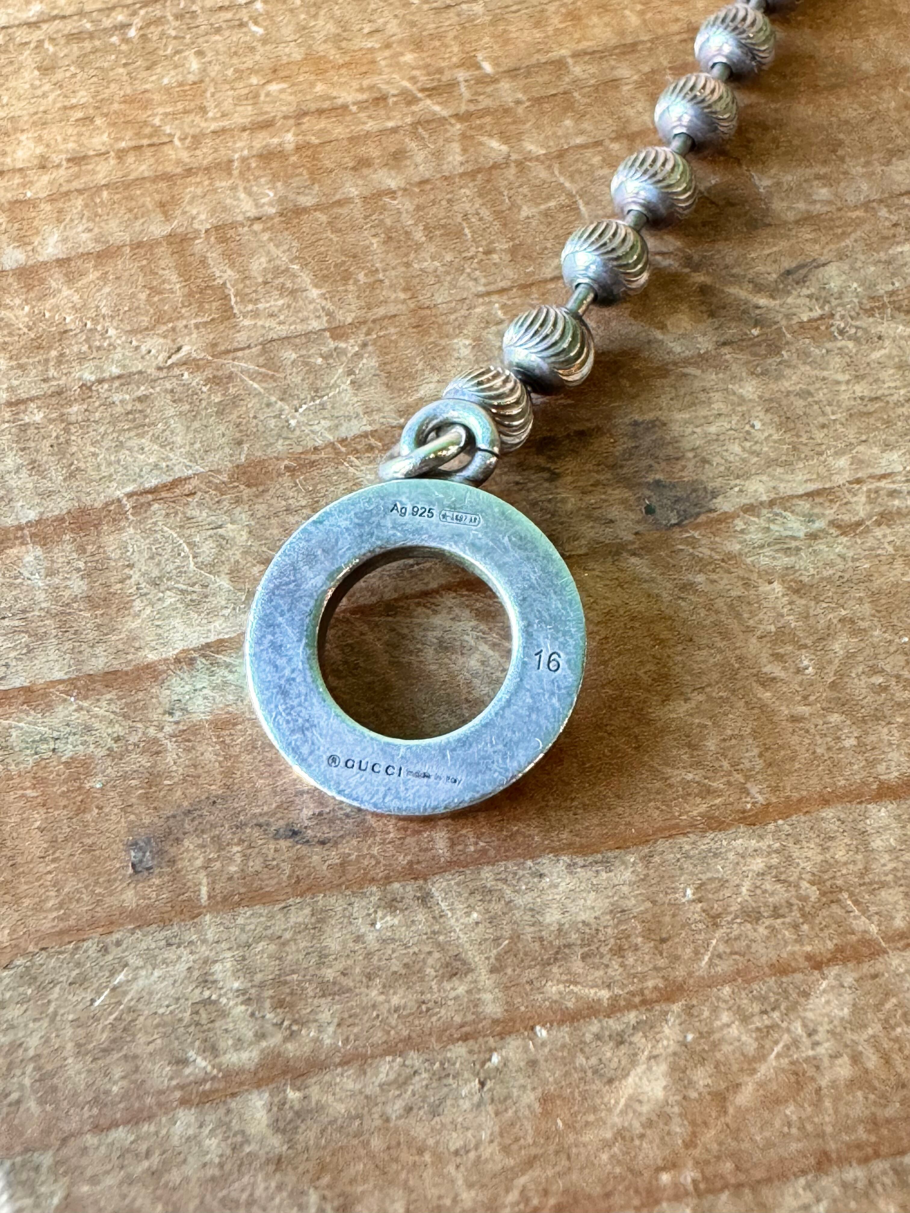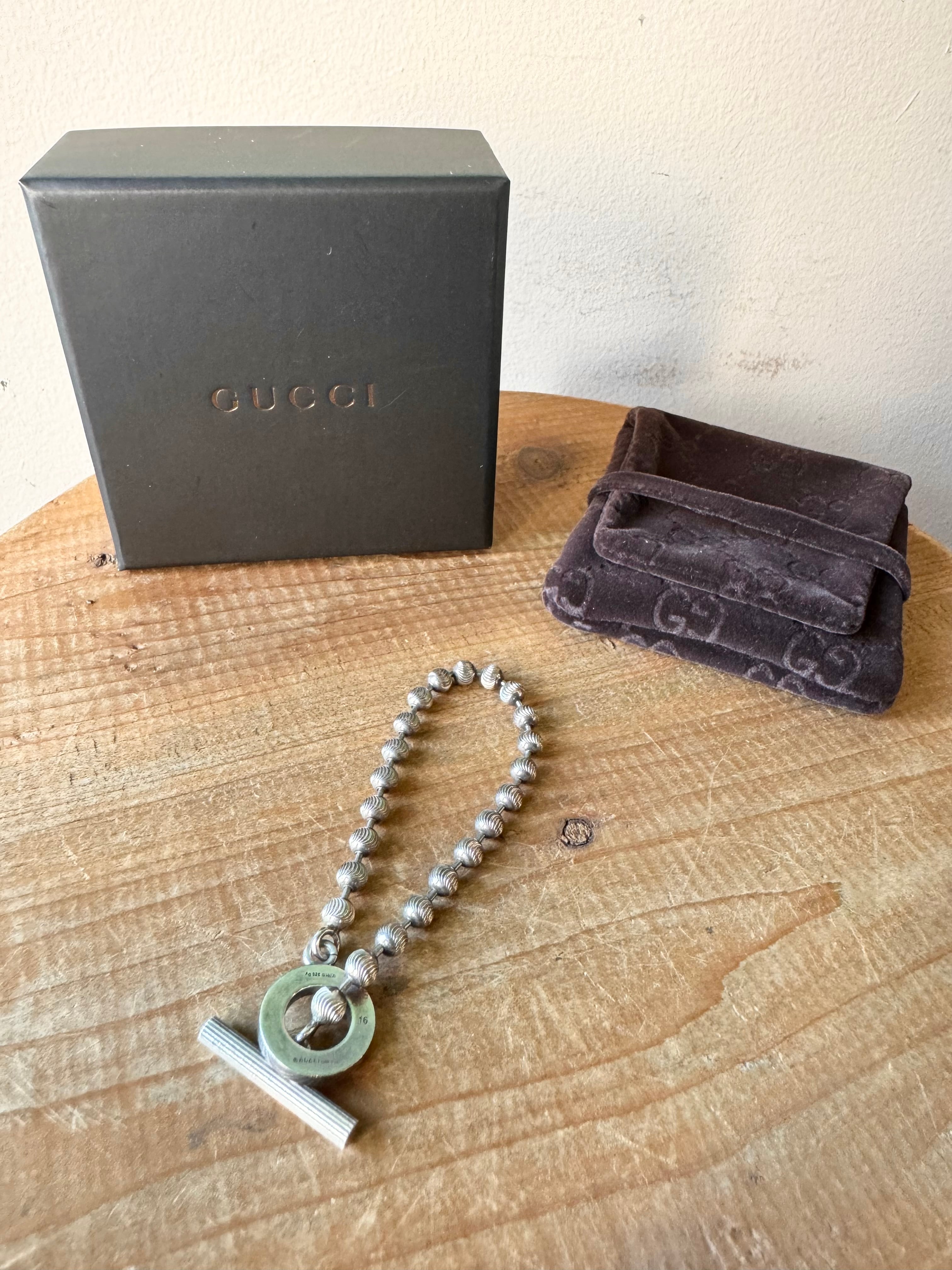 Tバータイプのグッチならではのアイテムですが、よく見るとボールチェーンがウネウネとした刻印の施された珍しいタイプです。